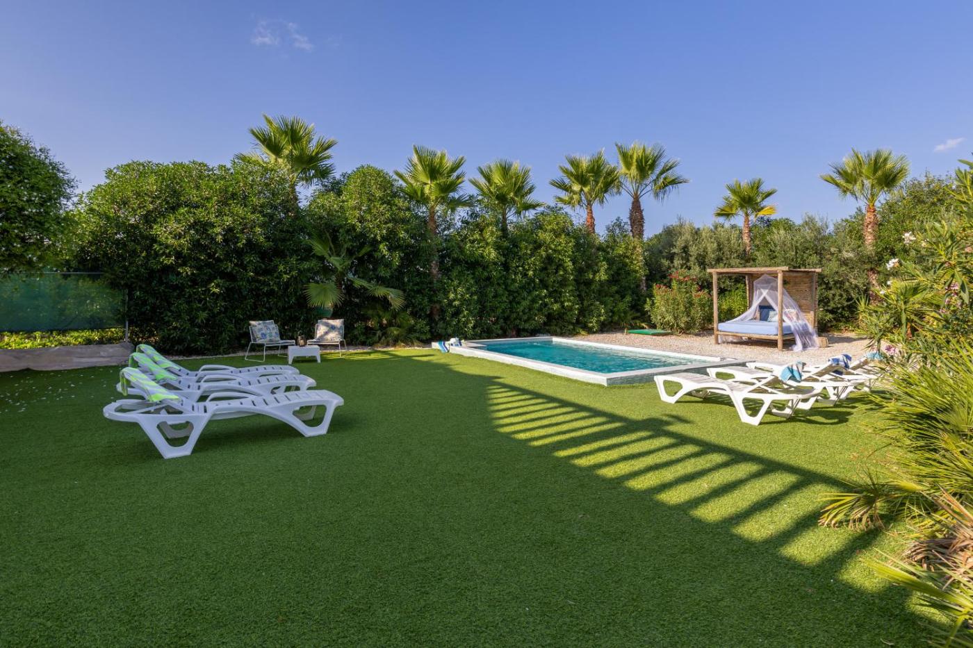Villa con piscina privada. This villa features a rooftop pool. This spacious villa is comprised of 1 living room, 5 separate bedrooms and 3 bathrooms with a bath and a shower. Guests will find a refrigerator, a dishwasher, kitchenware and an oven in the well-fitted kitchen. The villa also has a barbecue. The air-conditioned villa offers a TV, a washing machine, a tea and coffee maker, a seating area as well as garden views. The unit offers 12 beds.