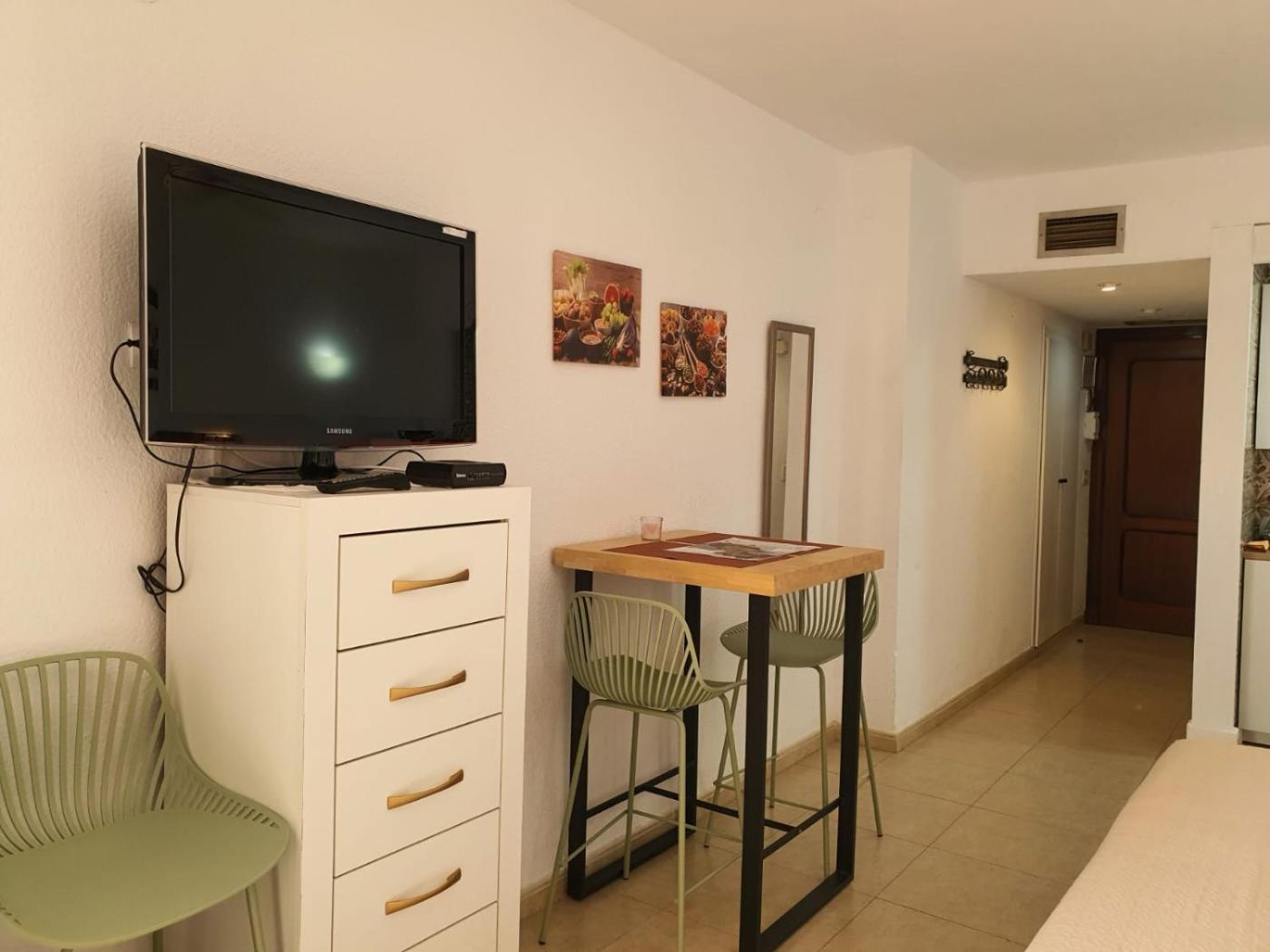 Apartamento de 1 dormitorio. This apartments special feature is the pool with a view. This air-conditioned apartment consists of 1 living room, 1 separate bedroom and 1 bathroom with a walk-in shower. The fully equipped kitchen features a stovetop, a refrigerator, kitchenware and a microwave. Featuring a terrace with sea views, this apartment also provides a tea and coffee maker and a flat-screen TV with cable channels. The unit offers 2 beds.