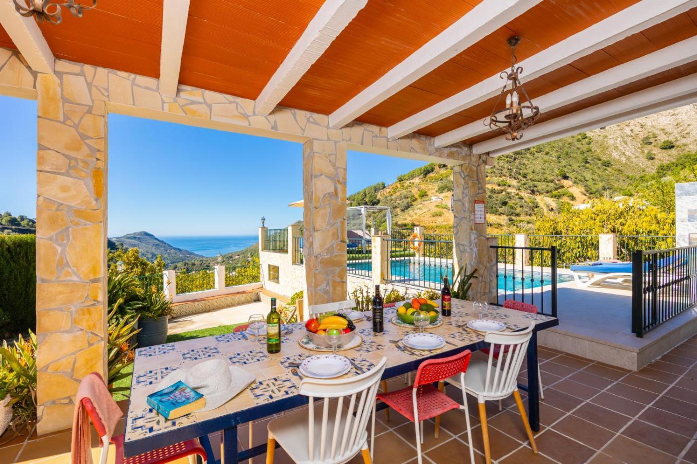 Villa el Nacimiento Nerja, que está en Almuñécar, tiene aire acondicionado y ofrece alojamiento con piscina privada, vistas al mar y terraza. Hay wifi gratis y se ofrece parking privado por un suplemento.