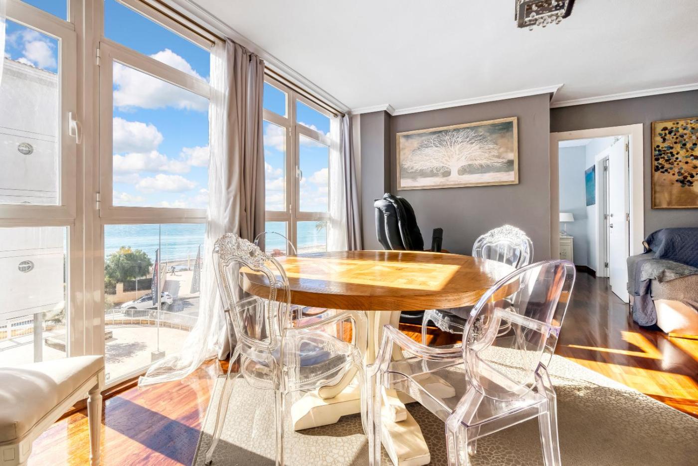 El apartamento dispone de 3 dormitorios, 2 baños, ropa de cama, toallas, TV, cocina totalmente equipada y patio con vistas al mar.