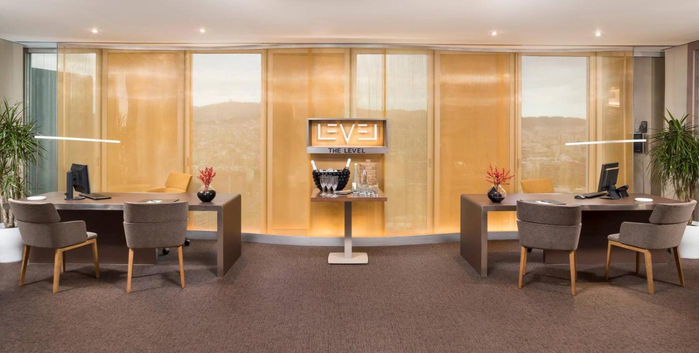 Habitación The Level. Esta habitación moderna, situada entre las plantas 14 y 17, tiene aire acondicionado y vistas al perfil urbano de Barcelona. Esta habitación cuenta con WiFi gratuita, TV de pantalla plana vía satélite, minibar y cafetera Nespresso®. Se proporciona carta de almohadas. El baño privado está equipado con ducha de efecto lluvia, secador de pelo, albornoz y zapatillas. Esta habitación incluye: - Acceso al salón VIP The Level, con periódicos, revistas, zona de trabajo y bar con bebidas y aperitivos - Uso de la sala de entrevistas para 2 personas (bajo petición y sujeto a disponibilidad) - Acceso a una zona de recepción privada con asistencia para llegadas, salidas, traslados, información turística, etc. - 1 entrada gratuita por estancia al Yhi Wellness Spa y acceso gratuito al gimnasio para adultos - TV con conexión a internet (Smart TV) y función de pantalla compartida - Servicio de planchado (1 prenda por estancia) - Servicio de limpieza de zapatos (bajo petición) ;