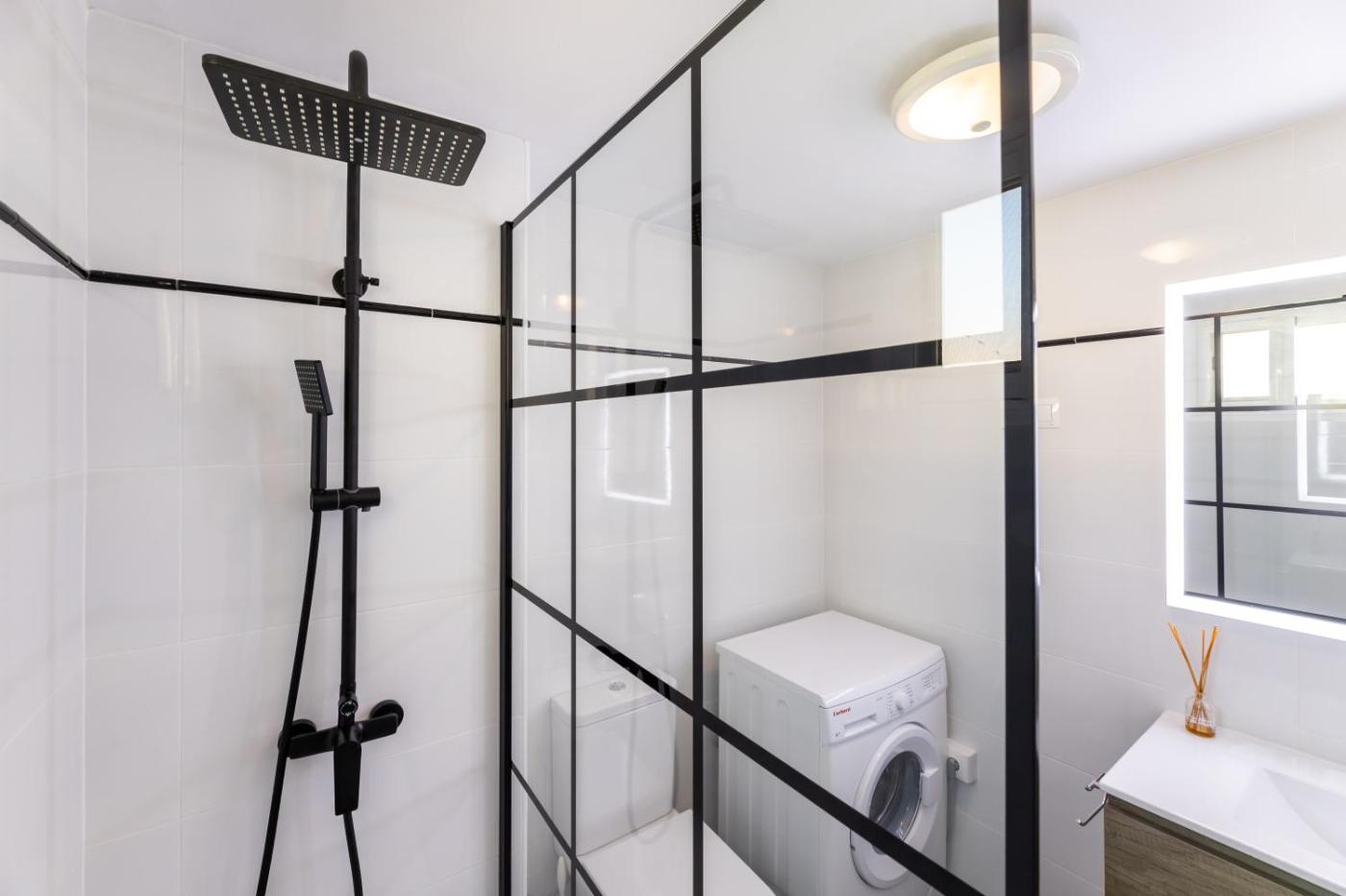 Apartamento de 1 dormitorio. This air-conditioned apartment features 1 living room, 1 separate bedroom and 1 bathroom with a walk-in shower. Meals can be prepared in the well-fitted kitchen, which has a refrigerator, a dishwasher, kitchenware and an oven. The apartment features a flat-screen TV with streaming services, a washing machine, a coffee machine, a seating area as well as garden views. The unit has 1 bed.