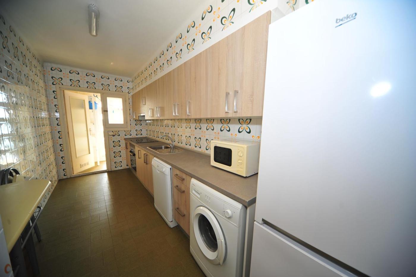 El apartamento tiene terraza, 4 dormitorios, sala de estar y cocina bien equipada con lavavajillas y horno. Hay TV.
