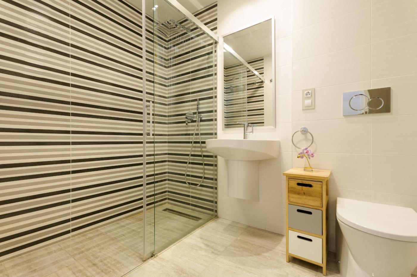 El apartamento dispone de 2 dormitorios, una cocina con nevera y lavavajillas, y 2 baños con ducha, secador de pelo y lavadora. Hay TV.