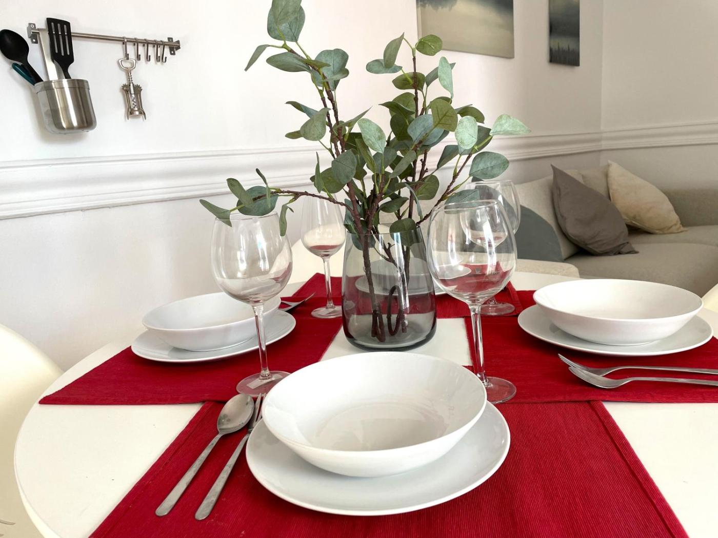 Todos los platos, vasos, cubiertos y otros utensilios de mesa se han desinfectado