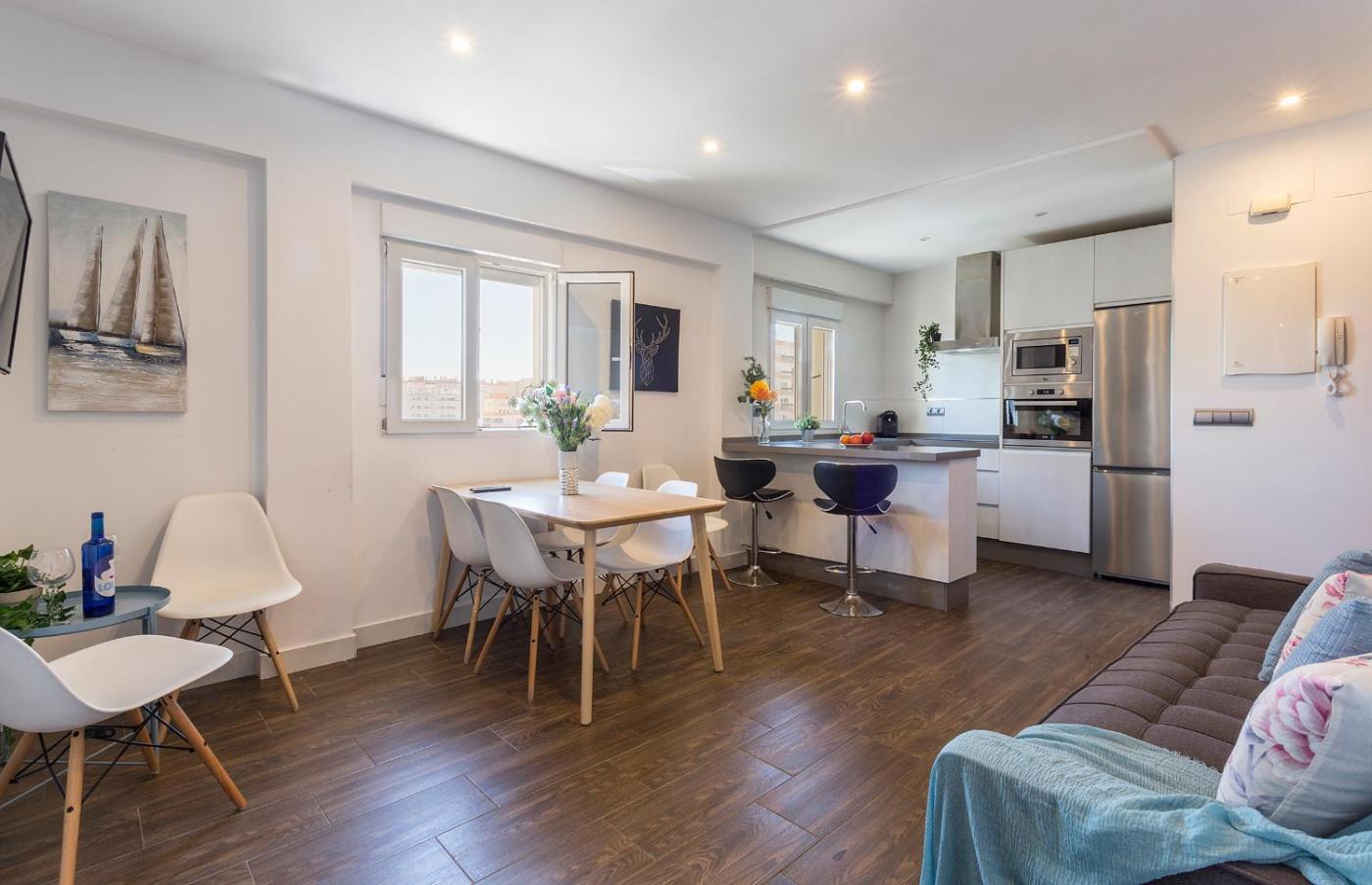 Apartamento con vistas al mar. This spacious apartment comprises 1 living room, 2 separate bedrooms and 2 bathrooms with a shower and a hairdryer. Meals can be prepared in the kitchen, which comes with a refrigerator, a dishwasher, kitchenware and an oven. The air-conditioned apartment provides a flat-screen TV with streaming services, a washing machine, soundproof walls, a tea and coffee maker as well as city views. The unit offers 4 beds.