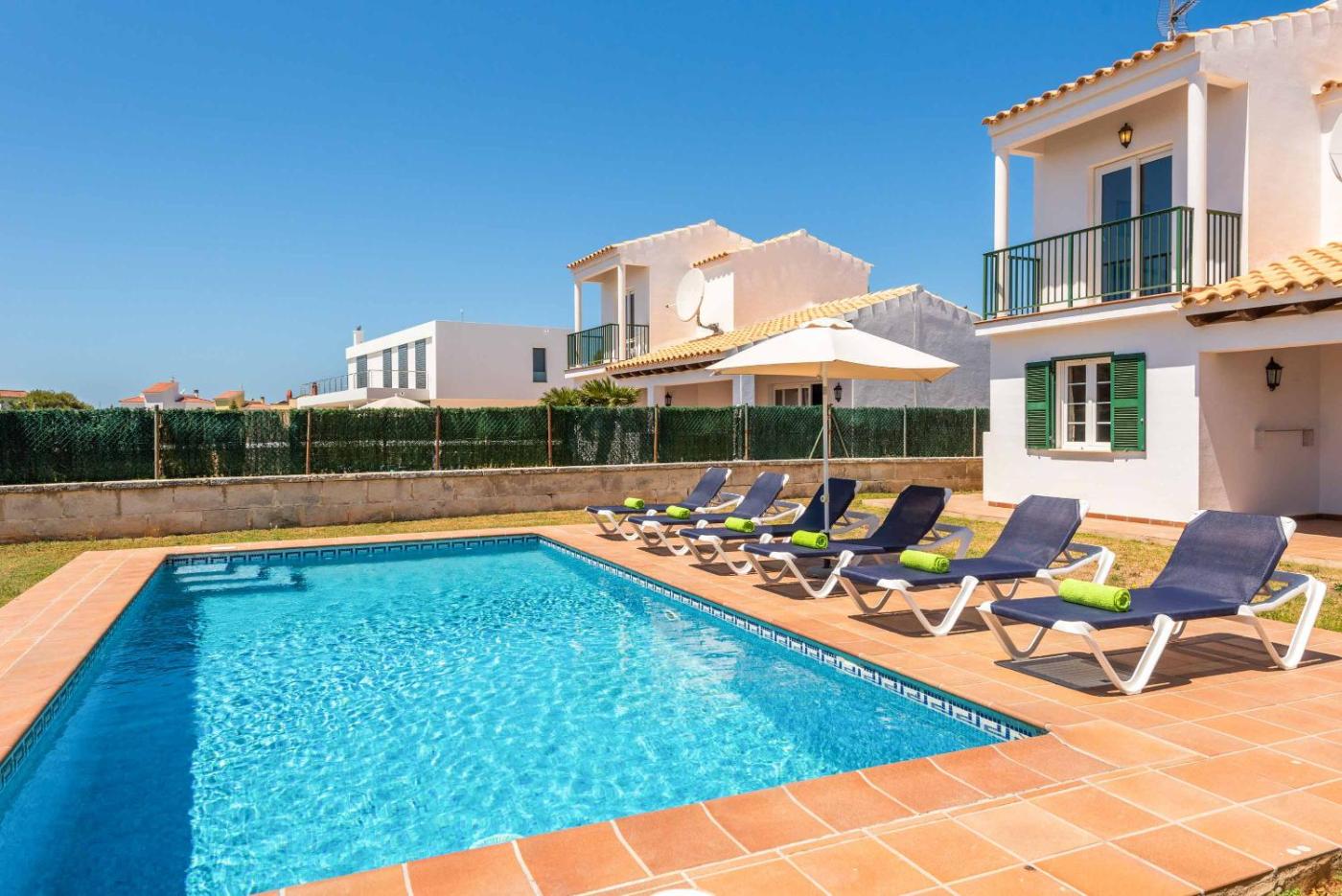 Villa Fuegosol está en Cala en Forcat, a 3 min a pie de Platja de Cala en Forcat y a 50 km de Puerto de Mahón, y dispone de alojamiento con wifi gratis, aire acondicionado y terraza. Ofrece balcón y piscina al aire libre.