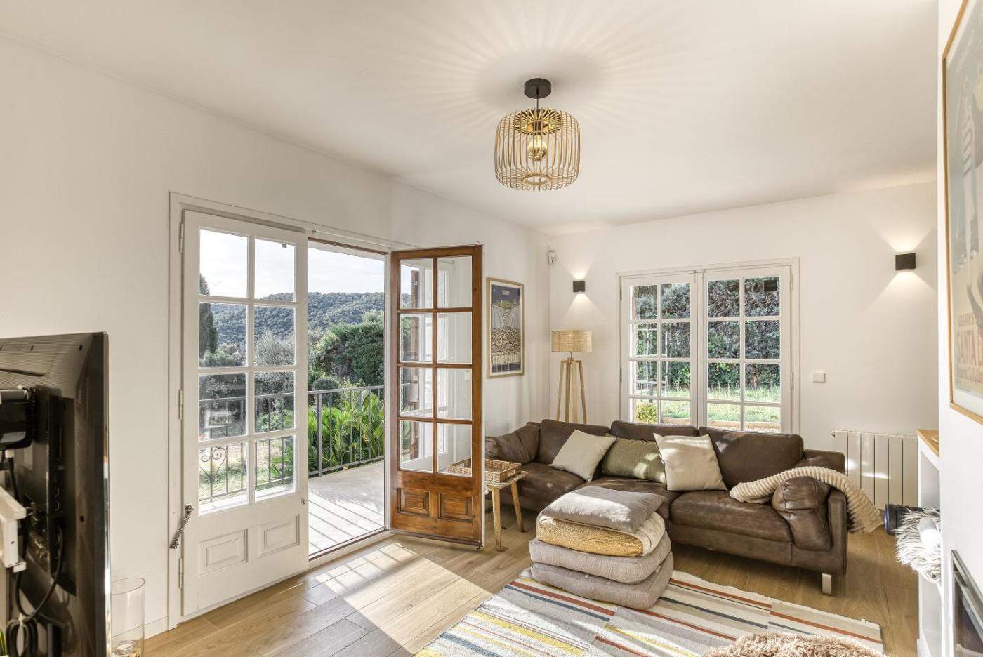 La villa cuenta con 3 dormitorios, 2 baños, ropa de cama, toallas, TV, cocina totalmente equipada y terraza con vistas a la montaña.