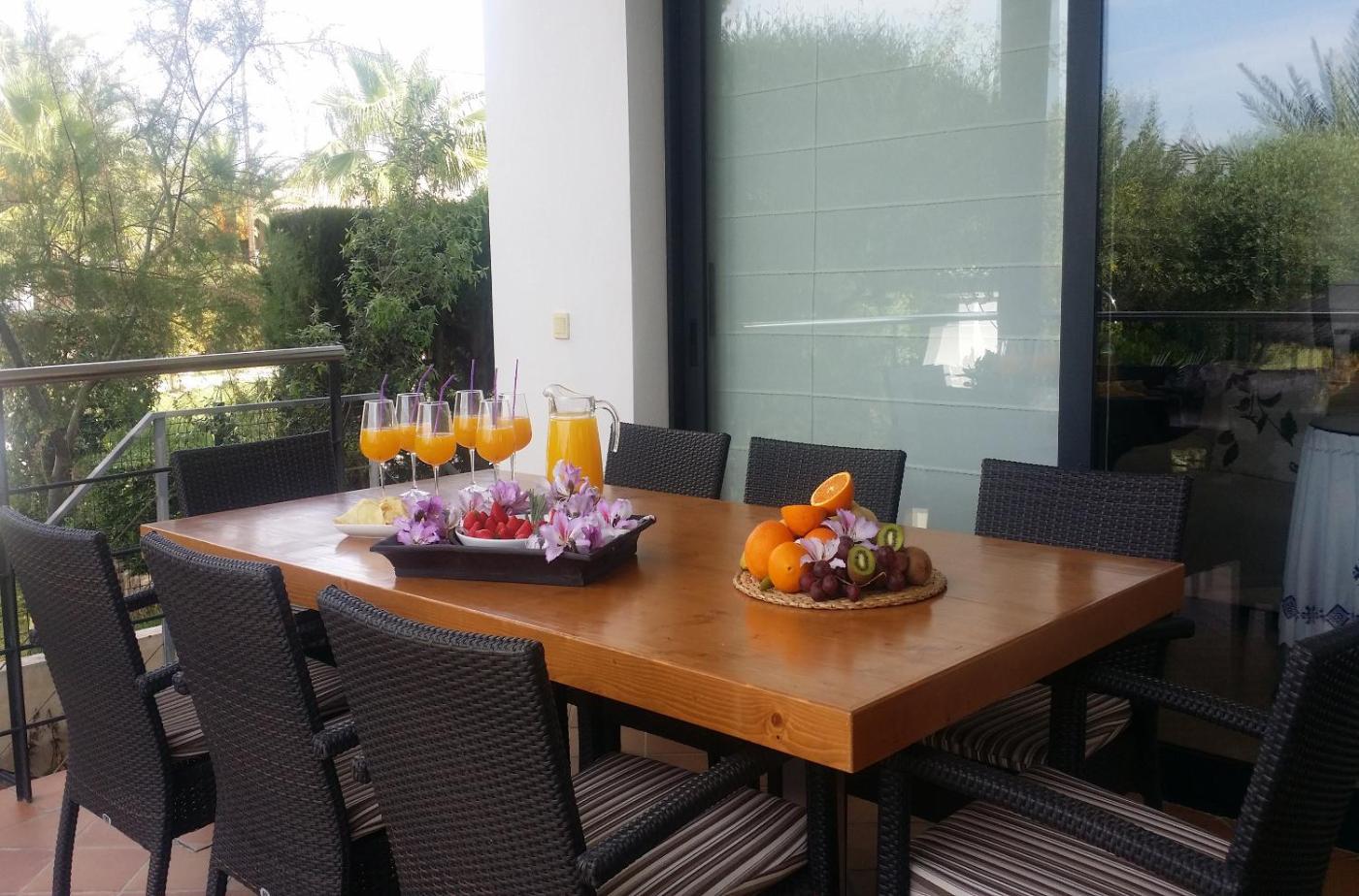La villa dispone de 4 dormitorios, 3 baños, ropa de cama, toallas, TV de pantalla plana con canales vÃa satélite, zona de comedor, cocina totalmente equipada y terraza con vistas a la piscina.