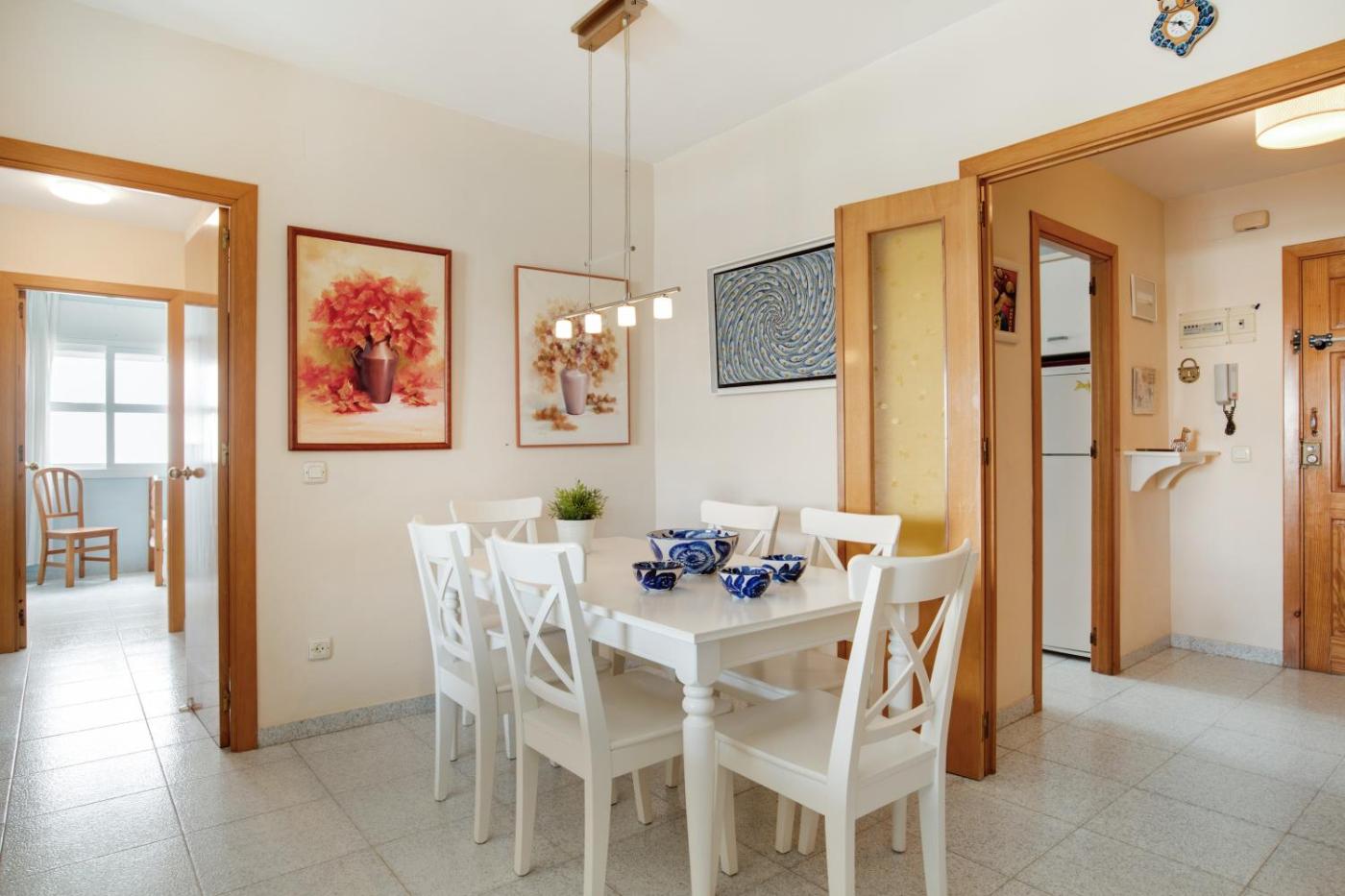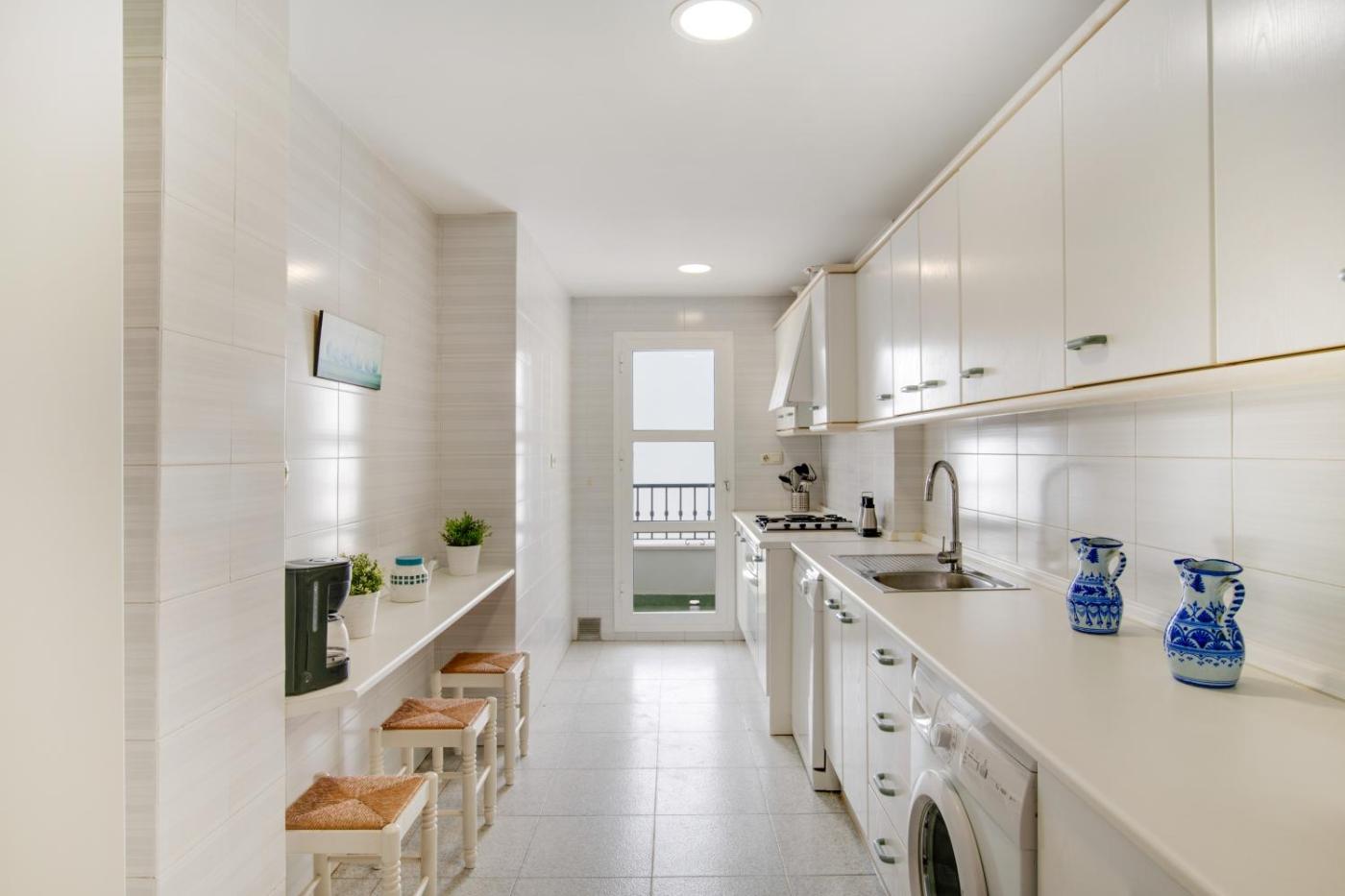 Apartamento con terraza. This spacious apartment features 3 bedrooms, kitchen, a terrace and 2 bathrooms with a bath. The apartments kitchen, which has a dishwasher and a microwave, is available for cooking and storing food. The apartment features air conditioning, a washing machine, a private entrance, a coffee machine and a TV. The unit has 5 beds.