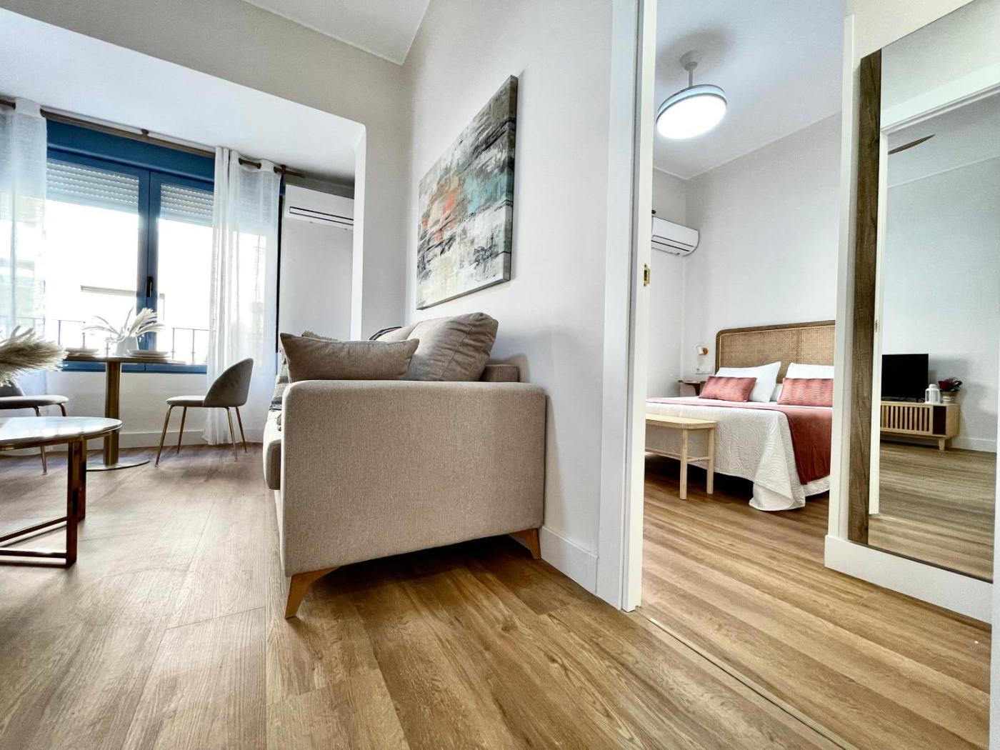 Apartamento de 1 dormitorio. Featuring a private entrance, this air-conditioned apartment is comprised of 1 living room, 1 separate bedroom and 1 bathroom with a hairdryer. The well-equipped kitchen has a stovetop, a refrigerator, an oven and a microwave. This apartment features a washing machine, a tea and coffee maker, a flat-screen TV and a terrace. The unit offers 2 beds.