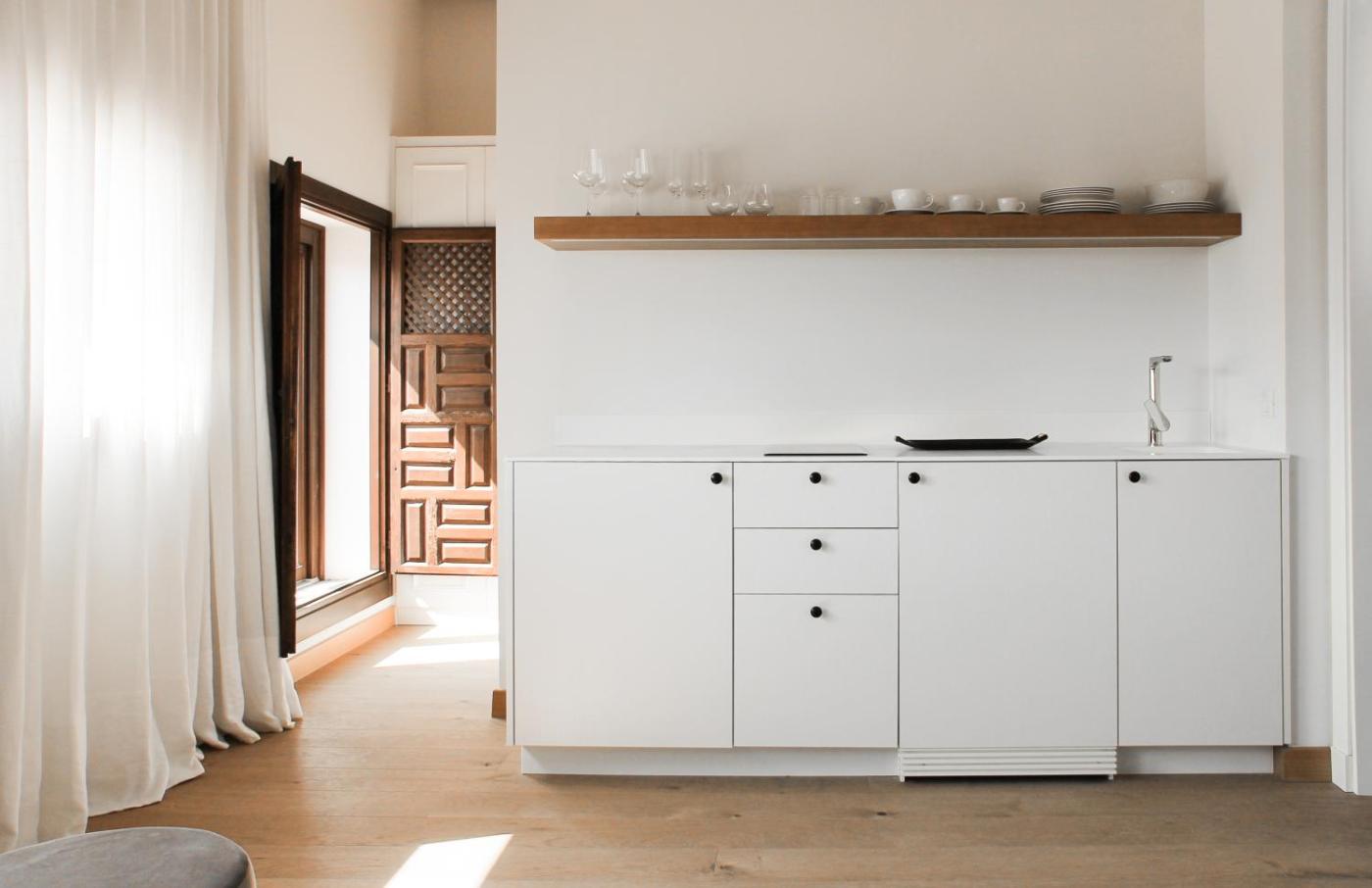 Suite Junior Superior. La suite dispone de aire acondicionado y consta de 1 dormitorio y baño con ducha a ras de suelo y secador de pelo. La cocina está totalmente equipada con nevera, utensilios, microondas y teteracafetera. Esta suite está adaptada para silla de ruedas y cuenta con paredes insonorizadas, zona de estar con TV de pantalla plana y ducha accesible en silla de ruedas. Incluye 2 camas. ;