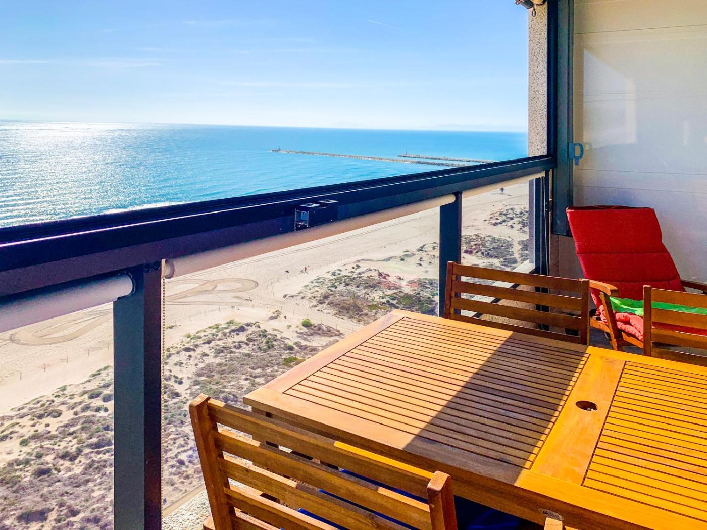 ESPACIO 15 - Primera Línea de Playa, que tiene piscina al aire libre, jardín y terraza, dispone de alojamiento en Cullera con wifi gratis y vistas al mar. El alojamiento, que está a 1 min a pie de Platja de Sant Antoni, ofrece pista de tenis y parking privado gratis.