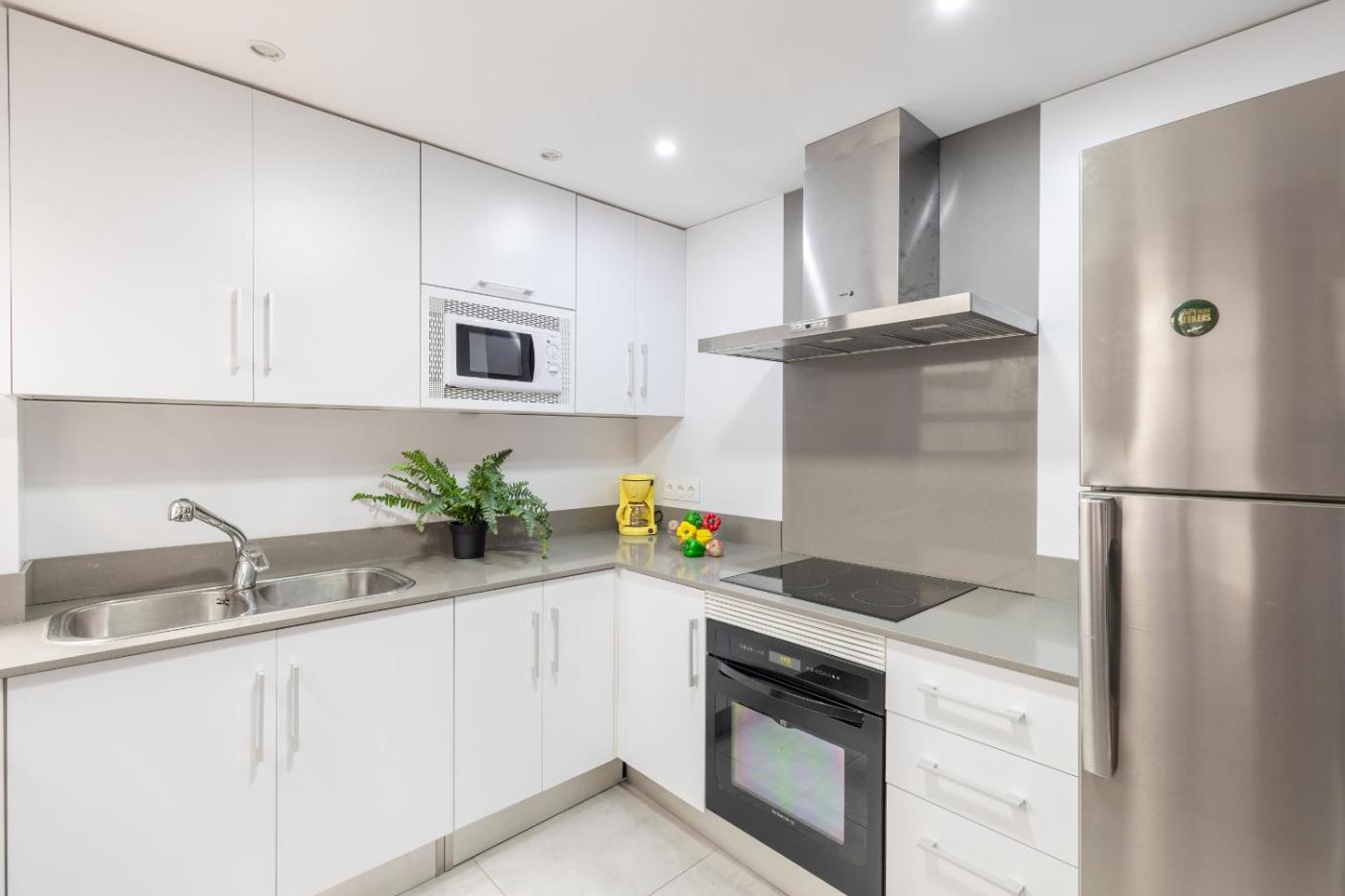 Este apartamento con aire acondicionado consta de 3 dormitorios, una sala de estar, una cocina totalmente equipada con nevera y cafetera, y 2 baños con ducha y secador de pelo. Hay toallas y ropa de cama en el apartamento.