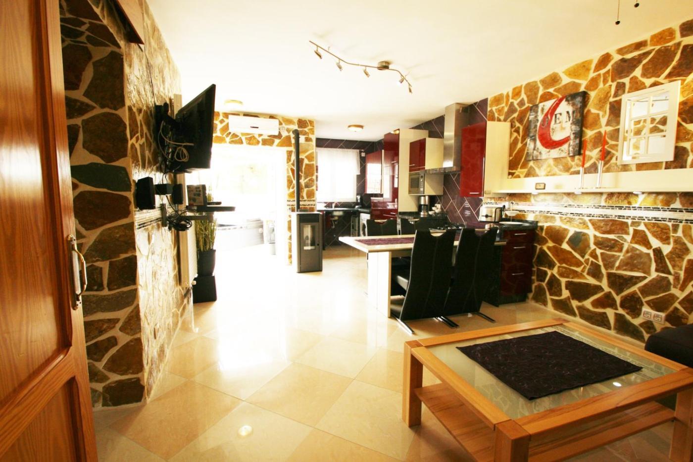 Villa Deluxe. This villa boasts a pool with a view, hot tub and fireplace. Featuring a private entrance, this air-conditioned villa comprises 1 living room, 1 separate bedroom and 1 bathroom with a walk-in shower and a bath. Guests will find a stovetop, a refrigerator, a dishwasher and kitchenware in the well-fitted kitchen. The villa also provides guests with a barbecue. Boasting a terrace with garden views, this villa also provides a washing machine and a flat-screen TV with satellite channels. The unit offers 3 beds.