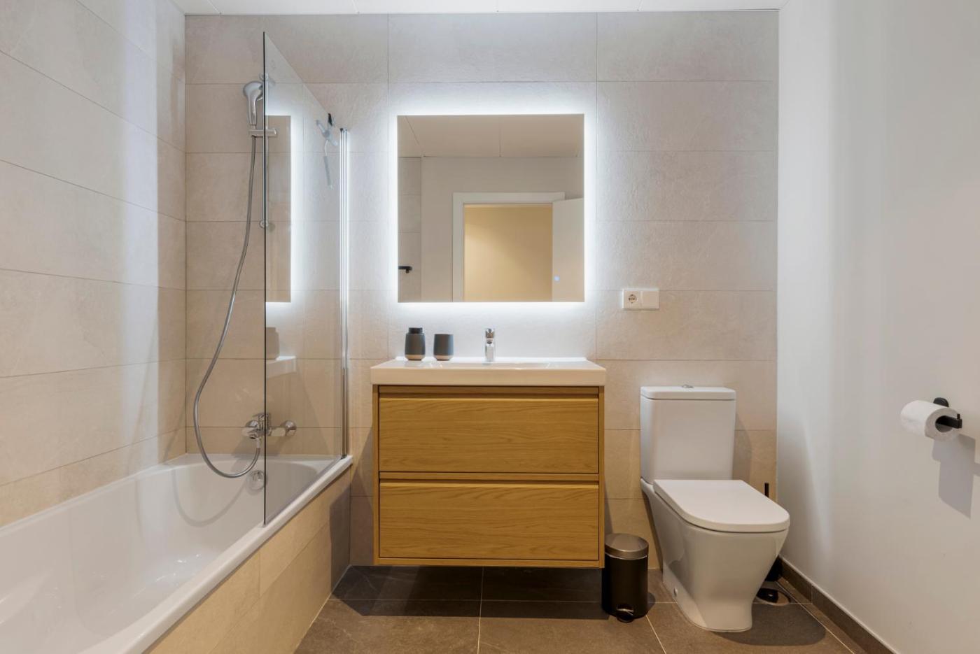 Apartamento de 3 dormitorios con vistas al mar. Boasting a private entrance, this air-conditioned apartment features 1 living room, 3 separate bedrooms and 2 bathrooms with a walk-in shower and a bath. Meals can be prepared in the well-fitted kitchen, which has a stovetop, a refrigerator, a dishwasher and kitchenware. The spacious apartment features a washing machine, a tea and coffee maker, a seating area, a flat-screen TV, as well as sea views. The unit has 5 beds.