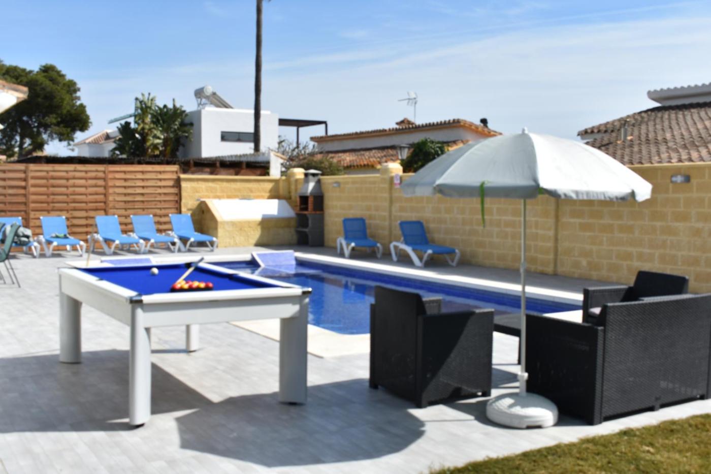 Villa Esmeralda, que tiene piscina al aire libre, jardÃn y terraza, dispone de alojamiento en Estepona con wifi gratis y vistas a la piscina. Este alojamiento frente a la playa ofrece mesa de billar, ping pong y parking privado gratis.