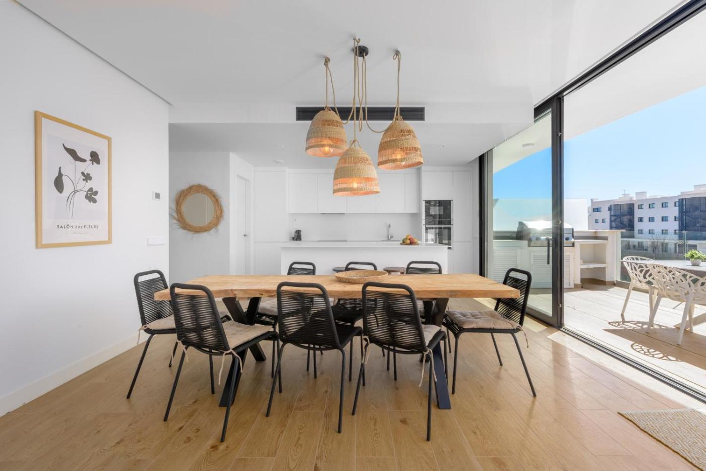 El apartamento cuenta con 3 dormitorios, 2 baños, ropa de cama, toallas, TV de pantalla plana, zona de comedor, cocina totalmente equipada y terraza con vistas al mar.