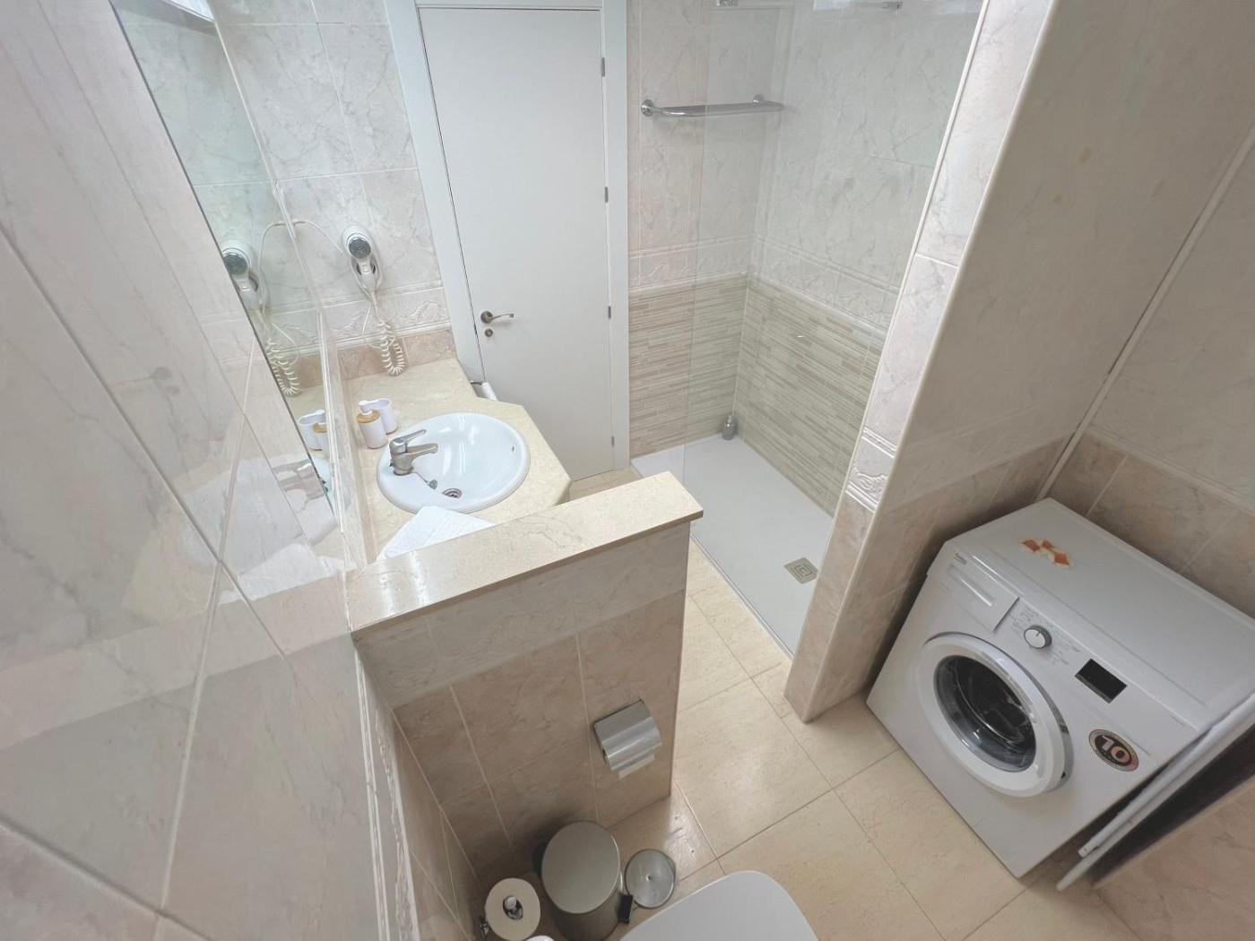 Estudio con terraza. In the well-fitted kitchen, guests will find a refrigerator, kitchenware, a microwave and a tea and coffee maker. The spacious studio offers air conditioning, a washing machine, a terrace with sea views as well as a private bathroom boasting a shower. The unit has 3 beds.