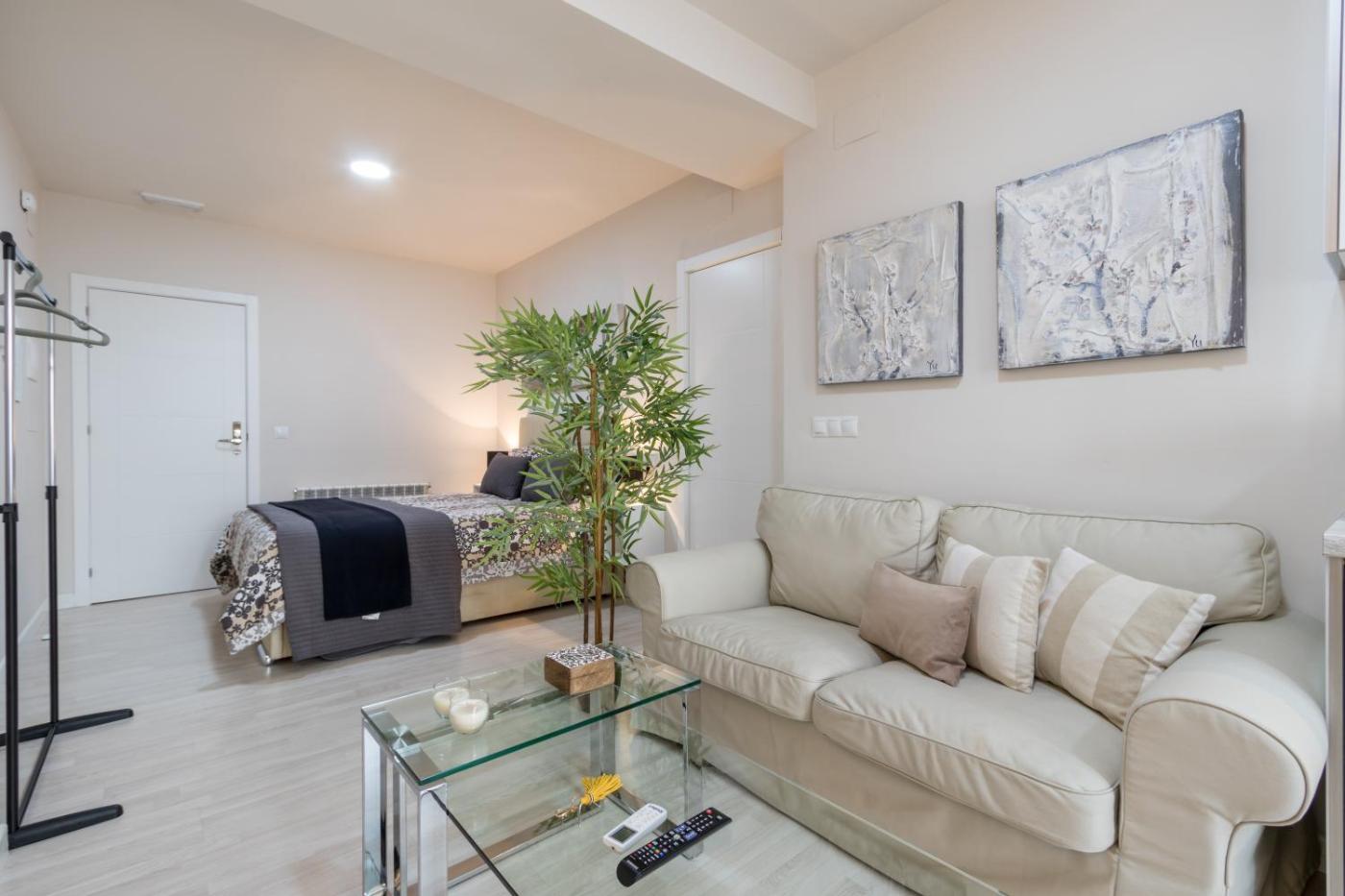 Apartamento Estudio. This apartment includes 1 living room, 1 separate bedroom and 1 bathroom with a walk-in shower and free toiletries. In the well-fitted kitchen, guests will find a stovetop, a refrigerator, kitchenware and a microwave. This apartment is air-conditioned and has a seating area with a flat-screen TV, a washing machine, a tea and coffee maker, a dining area, as well as tumble dryer. The unit has 1 bed. ;