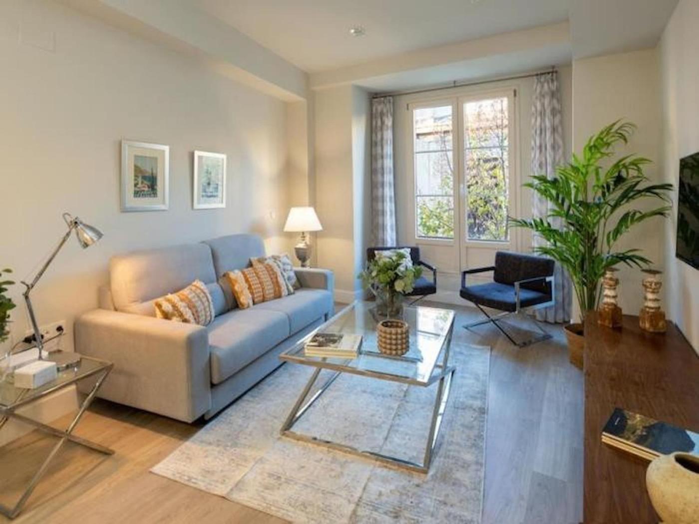 Apartamento de 1 dormitorio. This air-conditioned apartment comprises 1 living room, 1 separate bedroom and 1 bathroom with a shower. In the kitchen, guests will find a refrigerator, a dishwasher, kitchenware and an oven. The apartment provides a TV, a washing machine, a tea and coffee maker and heating. The unit offers 2 beds.