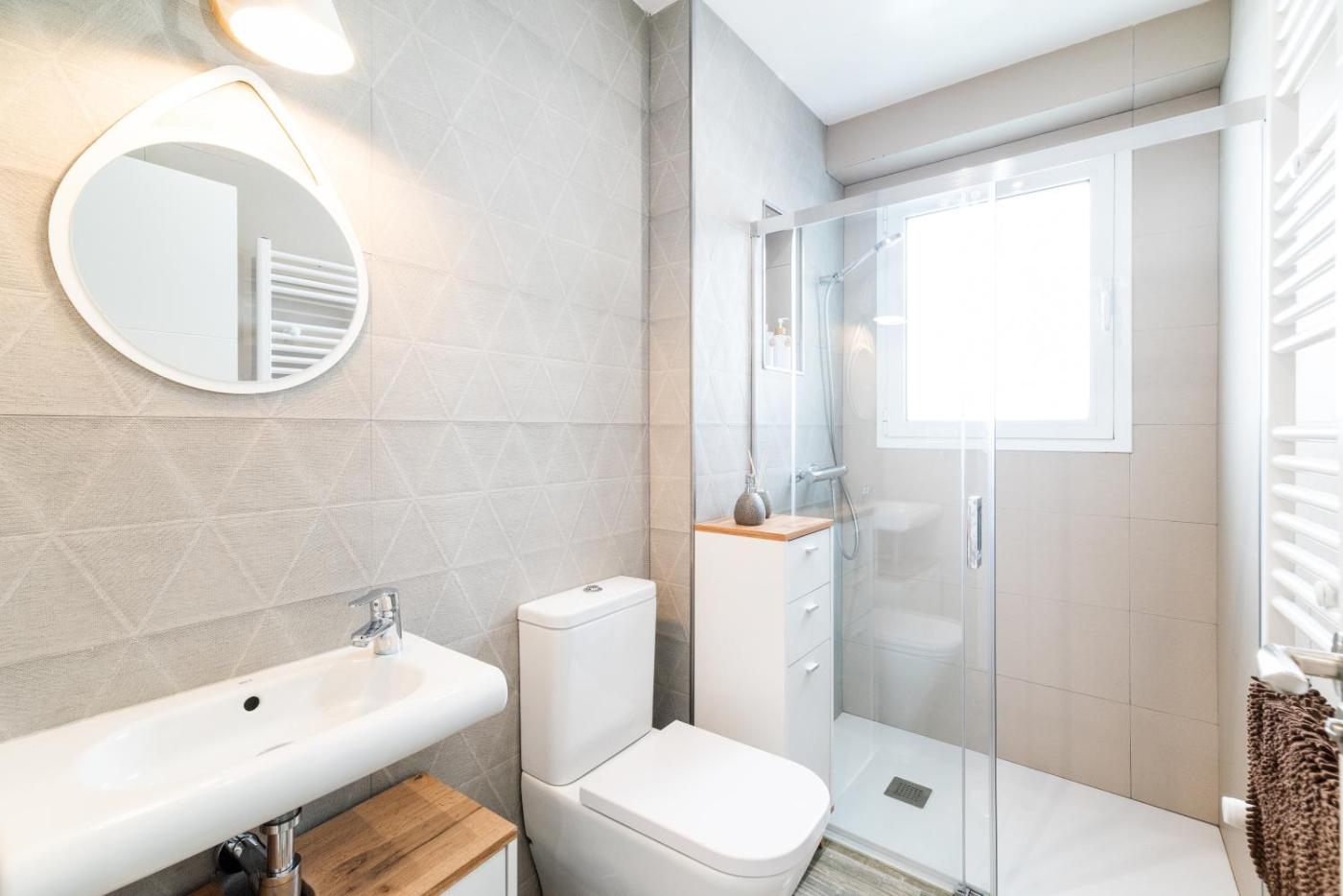 El apartamento cuenta con 3 dormitorios, 1 baño, ropa de cama, toallas, TV de pantalla plana, zona de comedor, cocina totalmente equipada y terraza con vistas a la ciudad.