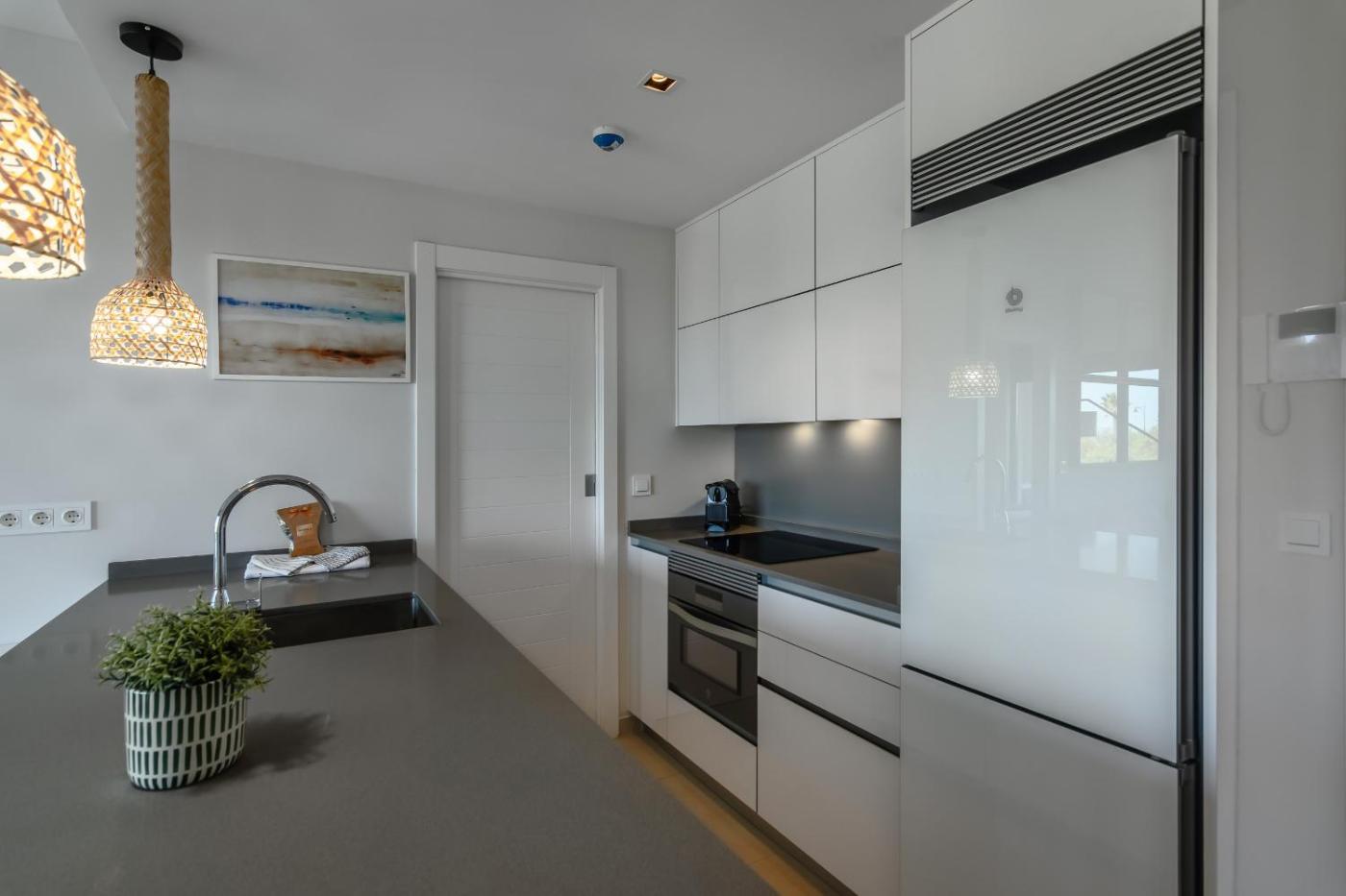 Apartamento Deluxe de 2 dormitorios con balcón. This spacious apartment consists of 2 bedrooms, kitchen, a terrace and 2 bathrooms with a shower. In the fully equipped kitchen, guests will find a refrigerator, a dishwasher, kitchenware and an oven. The air-conditioned apartment provides a TV, a washing machine, a tea and coffee maker, tumble dryer as well as sea views. The unit offers 3 beds.