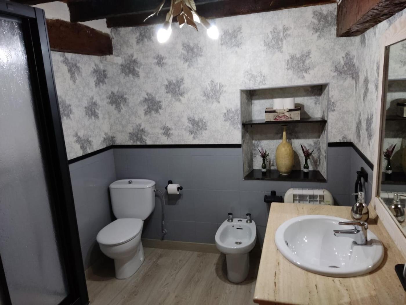 Habitación Familiar con baño. The family room includes a private bathroom, well-fitted with a bath, a shower, a bidet and a hairdryer. Boasting a patio, this family room also features a wardrobe, parquet floors and a flat-screen TV. The unit has 2 beds. ;