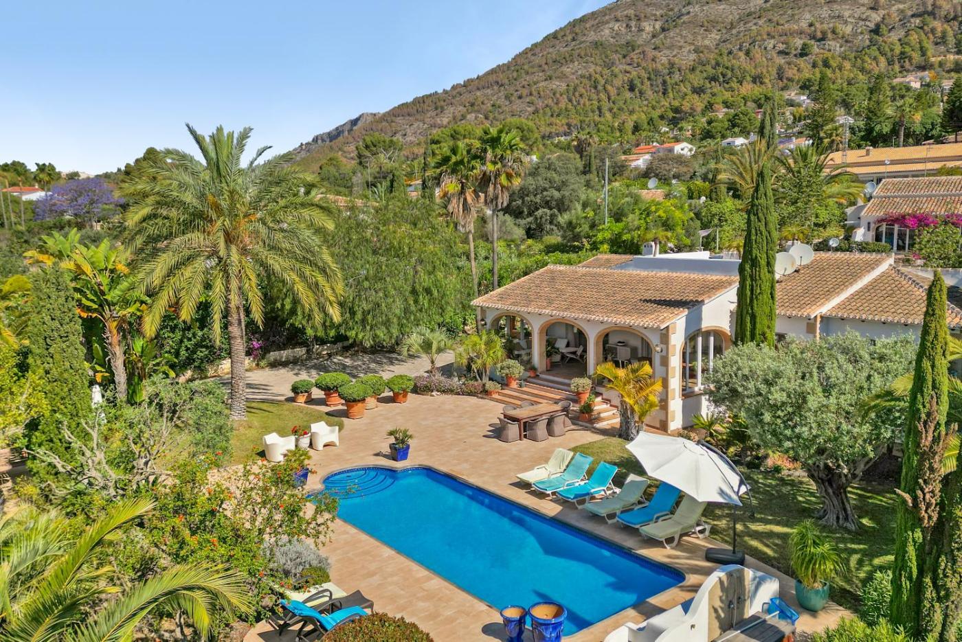 Flores, que tiene piscina al aire libre y jardín, dispone de alojamiento en Jávea con wifi gratis y vistas a la montaña. Esta villa tiene acceso a una cocina totalmente equipada.