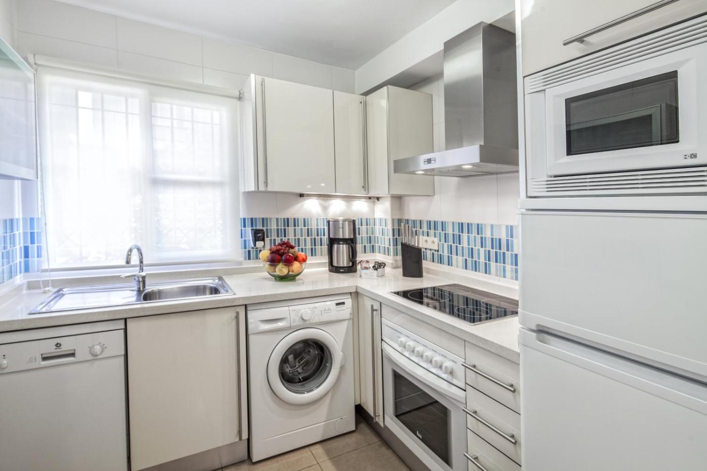 Apartamento de 1 dormitorio. El apartamento dispone de aire acondicionado y dormitorio doble. La sala de estar dispone de sofá cama y TV de pantalla plana vía satélite. El baño privado incluye secador de pelo y artículos de aseo. La zona de cocina está equipada con nevera, microondas, cafetera y lavadora. Las fotografías son orientativas. La habitación asignada puede variar en cuanto a distribución, mobiliario o vistas. ;