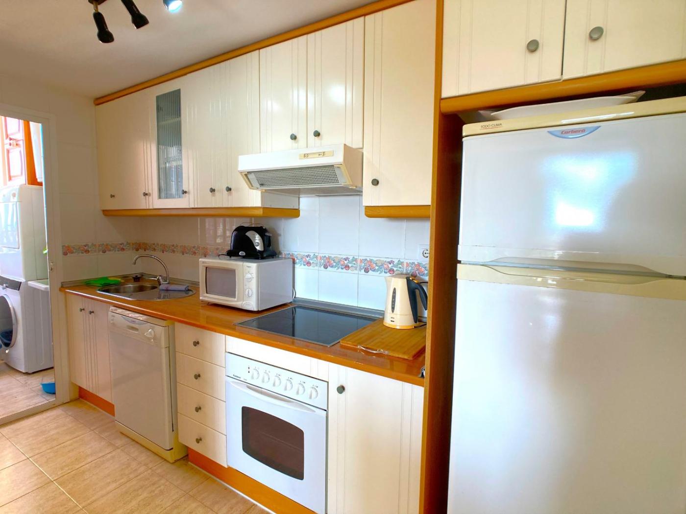 El apartamento tiene 2 dormitorios, 1 baño, ropa de cama, toallas, TV, cocina totalmente equipada y terraza con vistas al mar.