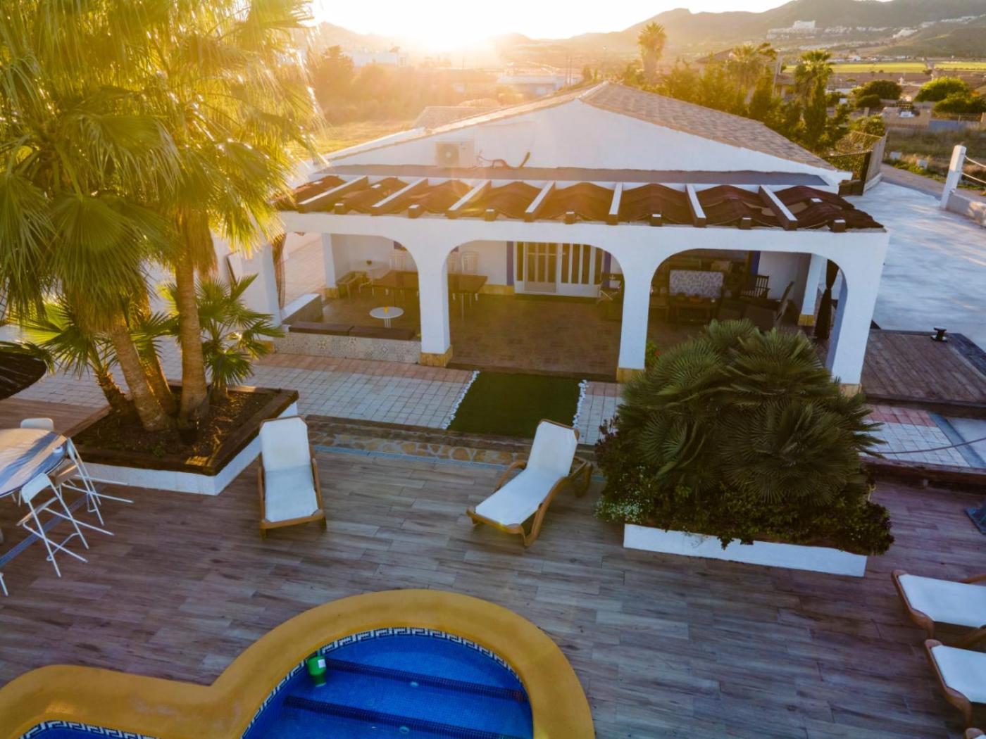 Ecoturismo Parque natural de calblanque chalet con piscina, que tiene piscina de temporada al aire libre, terraza y bar, dispone de alojamiento en Llano del Beal con wifi gratis y vistas al mar. Esta villa ofrece parking privado gratis y cocina compartida.
