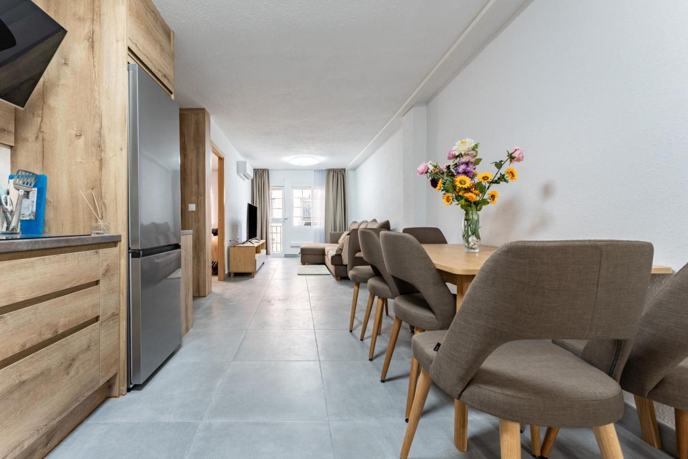 El apartamento tiene 3 dormitorios, una cocina con lavavajillas y microondas, y 2 baños con ducha, artículos de aseo gratuitos y lavadora.