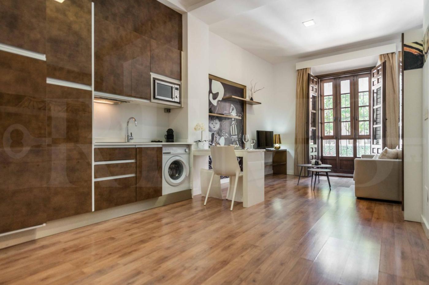 Apartamento Estudio. The air-conditioned apartment has 1 bedroom and 1 bathroom with a shower and a hairdryer. In the well-equipped kitchen, guests will find a stovetop, a refrigerator, kitchenware and a microwave. The apartment offers a washing machine, a tea and coffee maker, a seating area, a flat-screen TV, as well as city views. The unit has 1 bed.