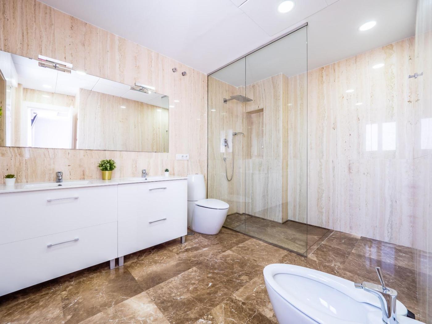 Apartamento de 3 dormitorios. This spacious apartment includes 1 living room, 3 separate bedrooms and 2 bathrooms with a shower and a bidet. Guests can make meals in the kitchenette that has a stovetop, a refrigerator, a microwave and a toaster. This apartment is air-conditioned and has a seating area with a flat-screen TV, a washing machine, a coffee machine, a dining area, as well as a wardrobe. The unit has 3 beds.