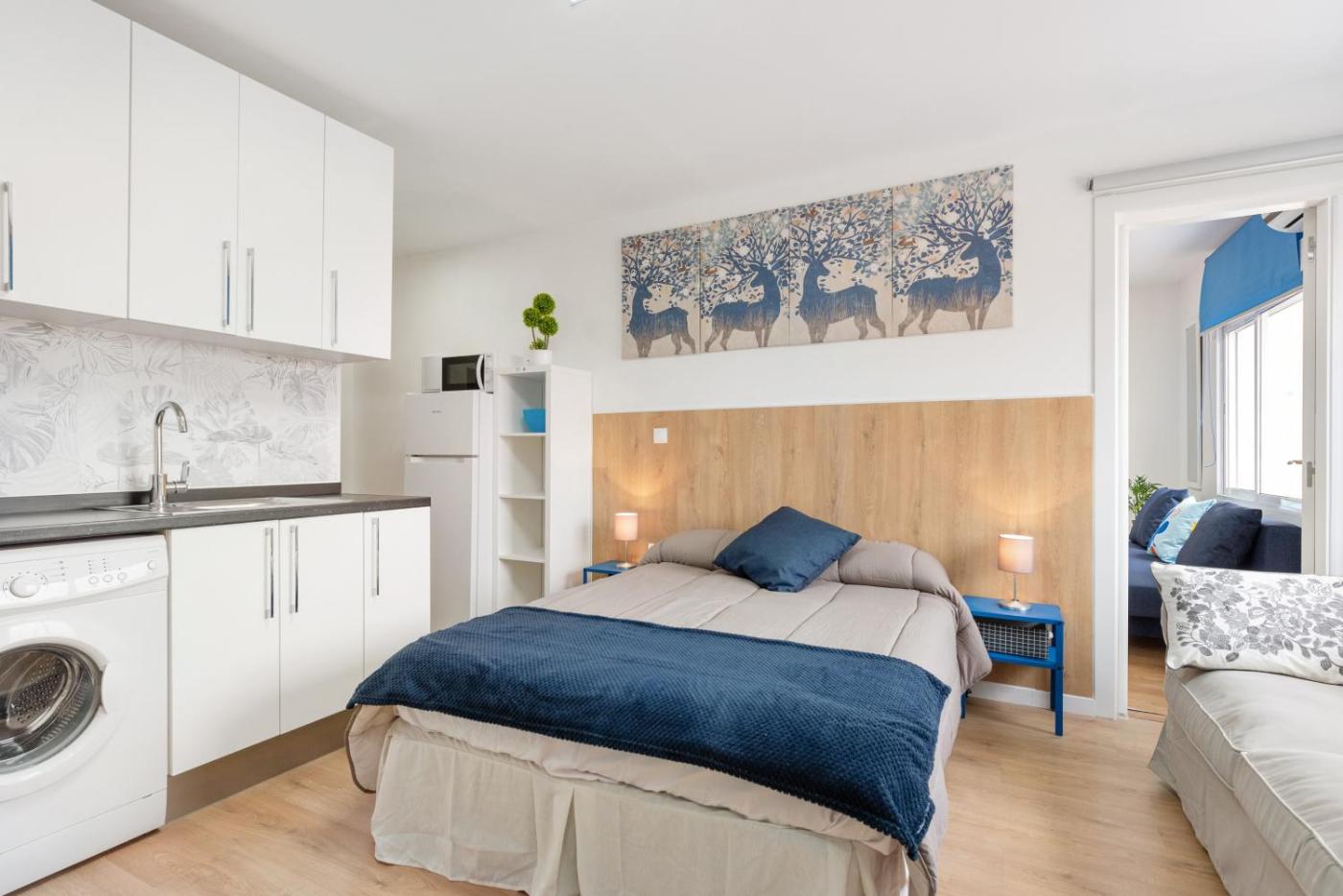 Estudio - Adaptado para personas con movilidad reducida. Offering free toiletries, this studio includes a private bathroom with a hairdryer. Guests can make meals in the kitchen that is fitted with kitchenware, a microwave and a toaster. The air-conditioned studio offers a TV, a washing machine, a private entrance, a coffee machine as well as city views. The unit offers 1 bed.