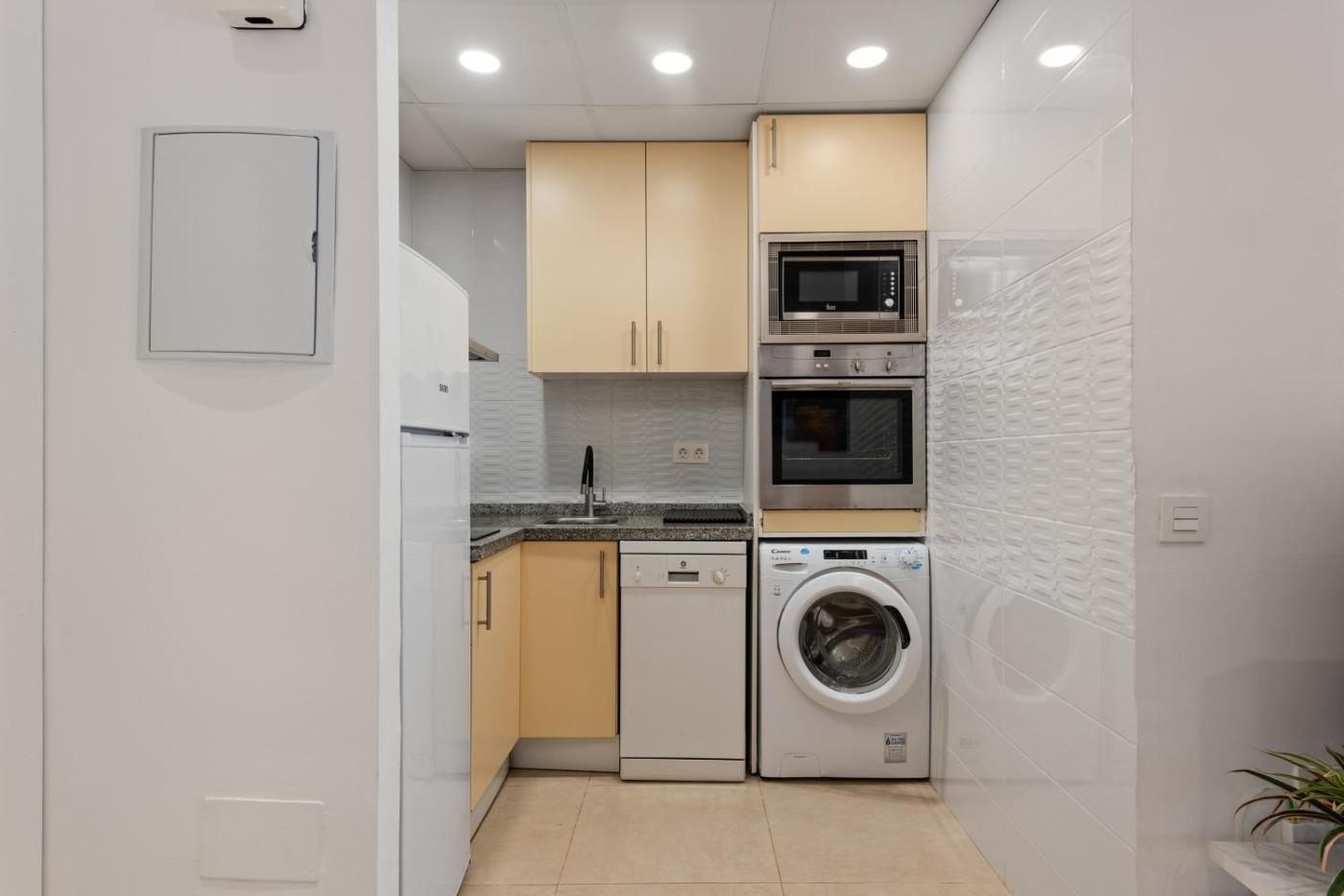 Estudio con terraza. Guests can make meals in the kitchen that is equipped with a dishwasher, kitchenware, an oven and a microwave. The spacious studio provides air conditioning, a washing machine, a terrace with garden views as well as a private bathroom featuring a shower. The unit offers 2 beds.
