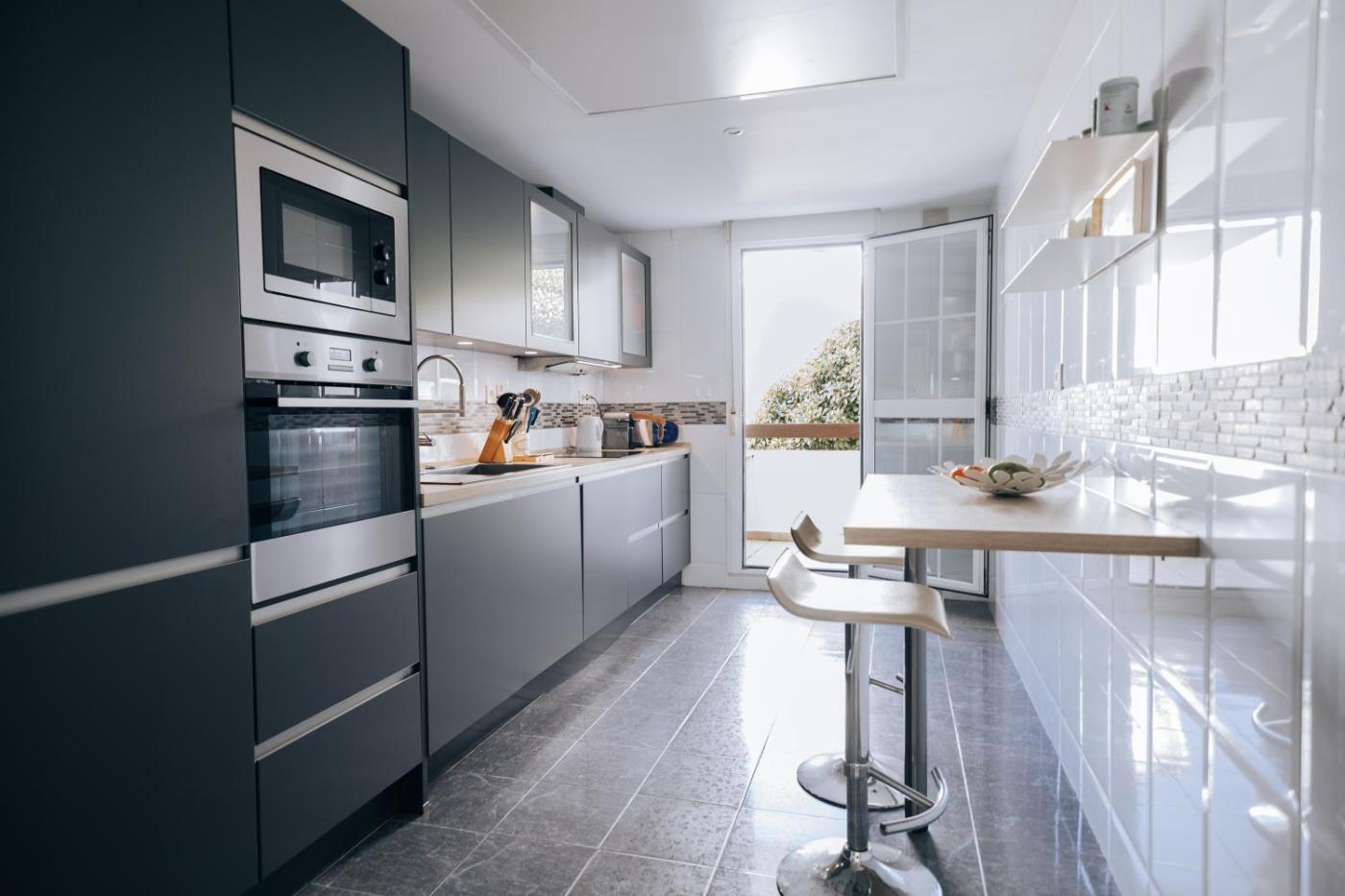 El apartamento tiene 3 dormitorios, 2 baños, ropa de cama, toallas, TV de pantalla plana, zona de comedor, cocina totalmente equipada y terraza con vistas al mar.