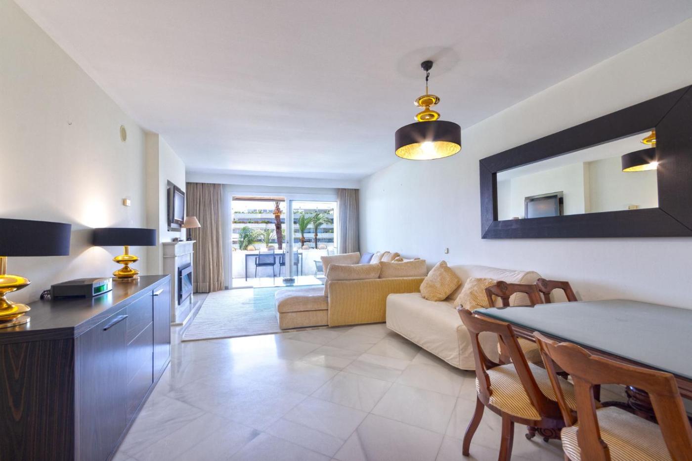 Los Granados Puerto Banus se encuentra en Marbella y ofrece una terraza con vistas al mar y a la piscina, además de piscina al aire libre abierta todo el año, piscina cubierta y sauna. Este apartamento dispone de piscina privada, jardín y parking privado gratis.