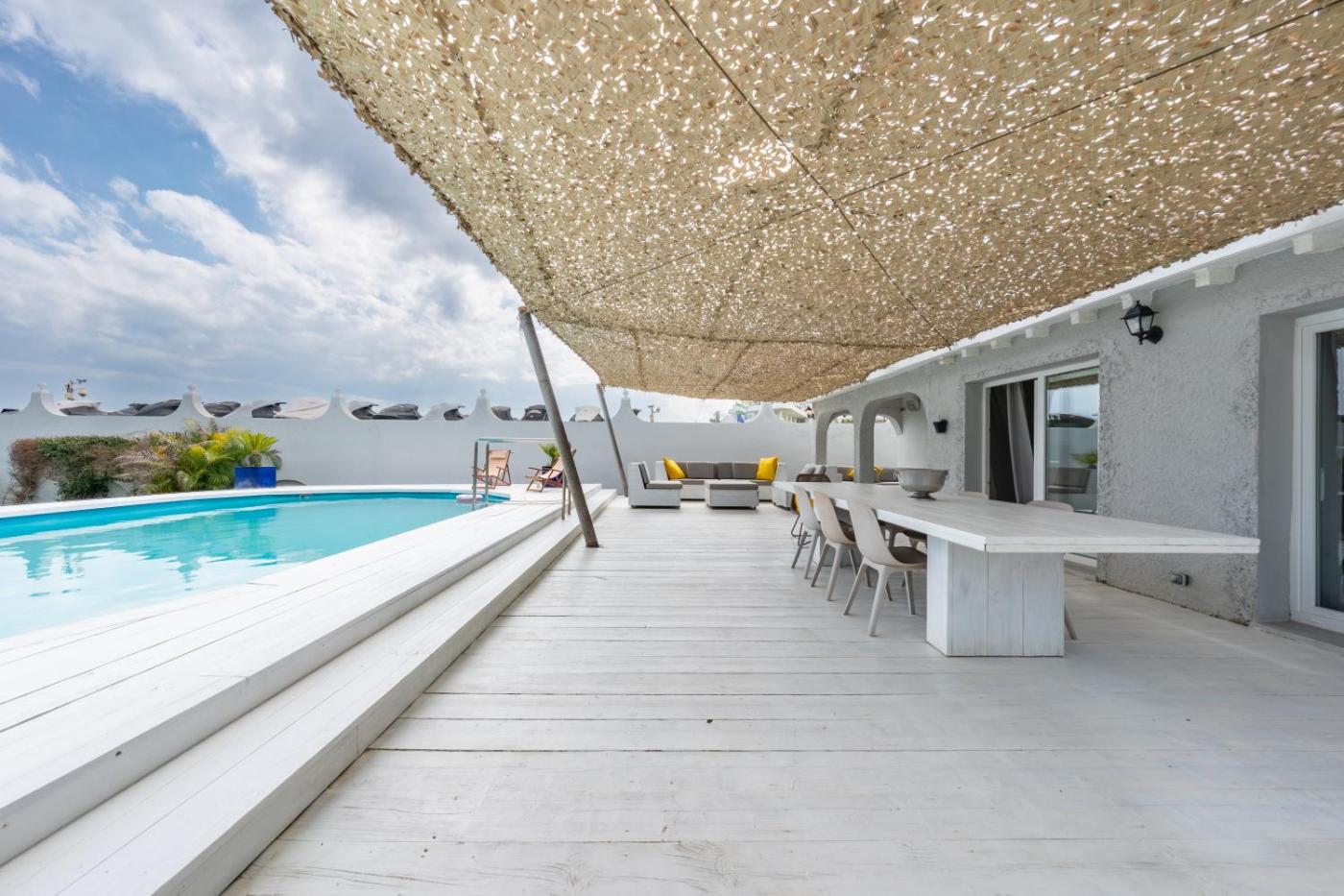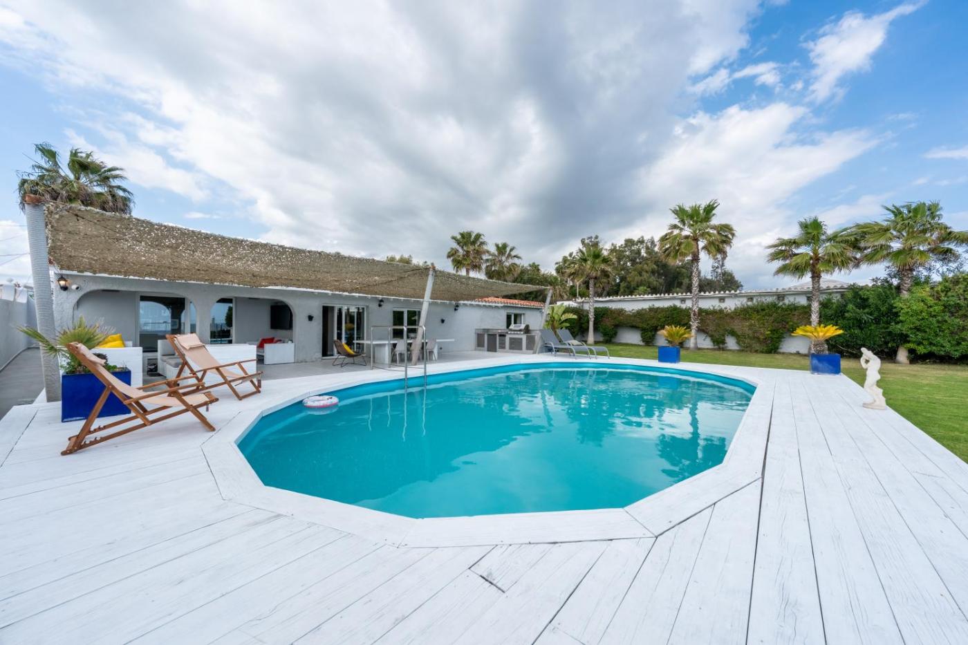 Villa frente a la playa. The pool with a view and fireplace are the standout features of this villa. Boasting a private entrance, this air-conditioned villa features 2 living rooms, 4 separate bedrooms and 3 bathrooms with a shower and a hairdryer. Guests will find a refrigerator, a dishwasher, an oven and a microwave in the fully equipped kitchen. The villa also comes with a barbecue. The spacious villa features a flat-screen TV, a washing machine, soundproof walls, a minibar as well as sea views. The unit has 7 beds.