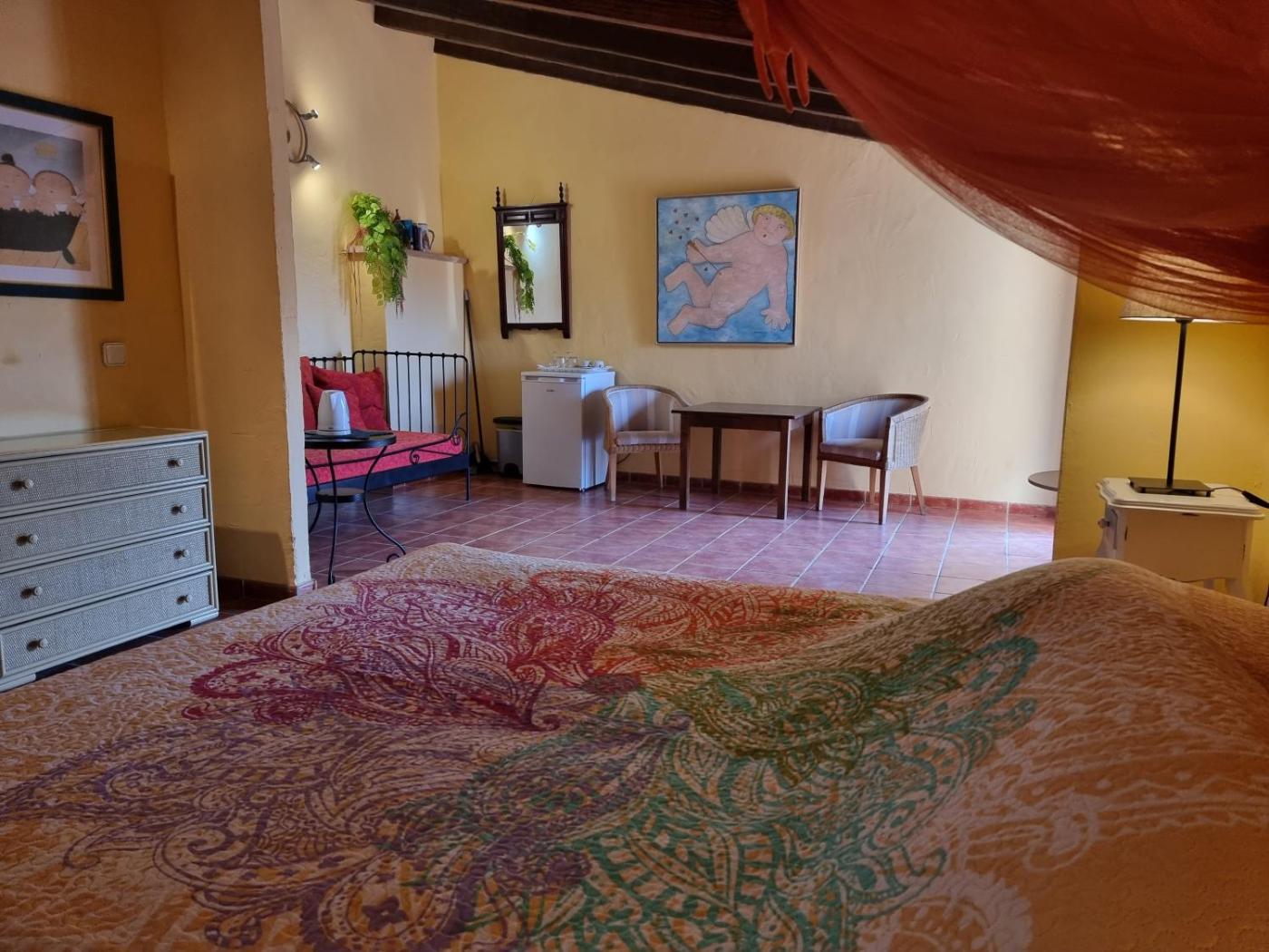 Habitación Doble. The well-equipped kitchenette features a stovetop, a refrigerator, kitchenware and a toaster. The double room provides a tea and coffee maker, a seating area, a terrace with garden views as well as a private bathroom featuring a walk-in shower. The unit offers 1 bed. ;