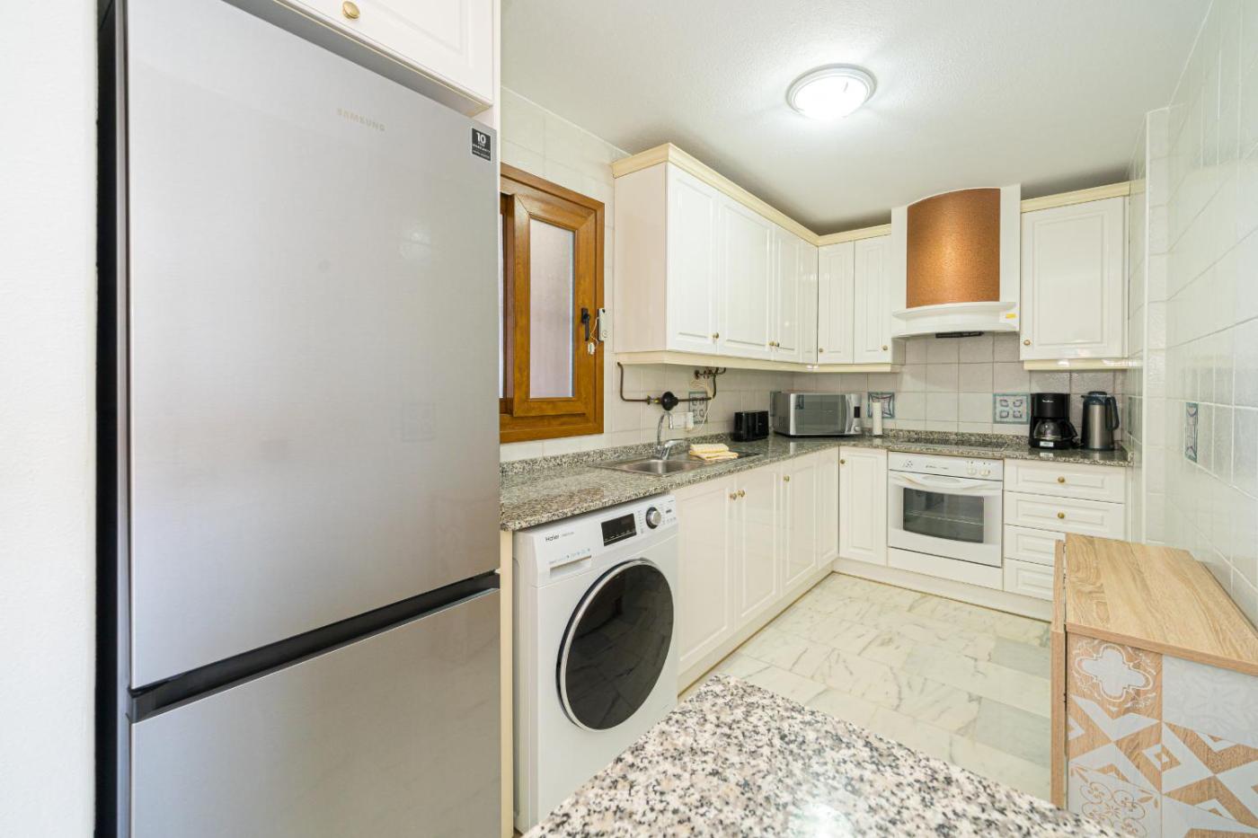 Apartamento con terraza. This spacious apartment consists of 1 living room, 2 separate bedrooms and 2 bathrooms with a bath and a shower. The fully equipped kitchen features a refrigerator, kitchenware, an oven and a microwave. The air-conditioned apartment provides a TV with satellite channels, a washing machine, a tea and coffee maker, heating as well as garden views. The unit offers 4 beds.