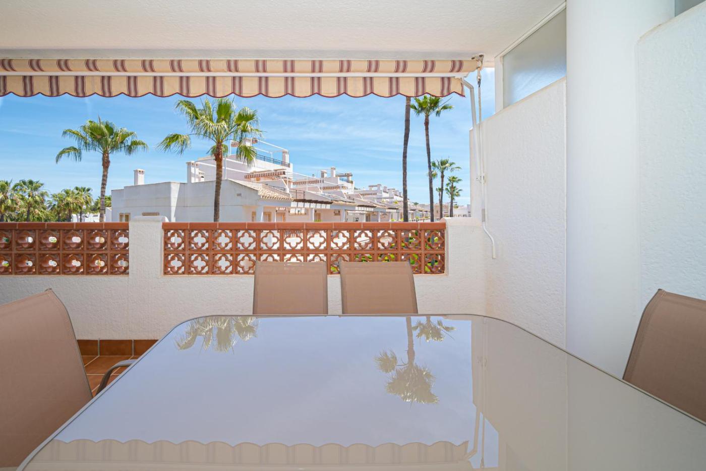 El apartamento cuenta con 2 dormitorios, 2 baños, ropa de cama, toallas, TV con canales vÃa satélite, cocina totalmente equipada y terraza con vistas a la piscina.