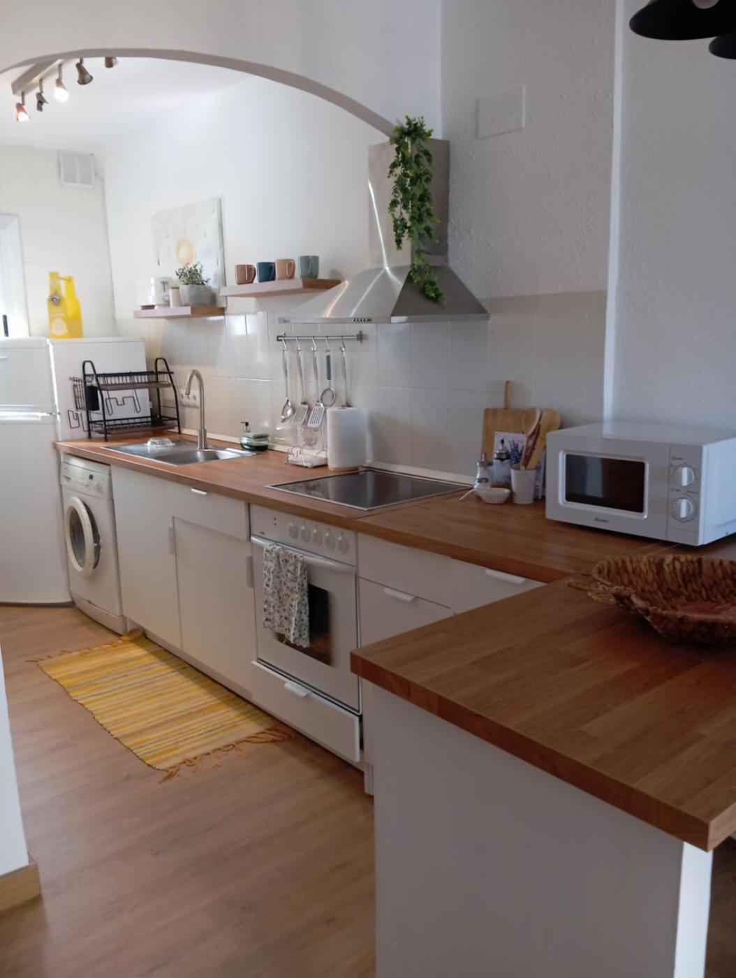 El apartamento cuenta con TV de pantalla plana. La cocina está equipada con nevera, horno y fogones, además de cafetera.
