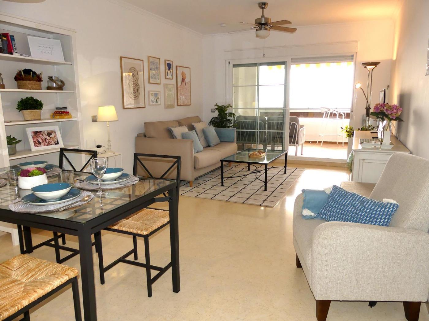 Apartamento Deluxe de 2 dormitorios con vistas al mar. This spacious apartment is comprised of 2 bedrooms, a kitchen and 2 bathrooms with a bath and a shower. The well-fitted kitchen features a dishwasher, kitchenware, an oven and a microwave. The air-conditioned apartment offers a TV with streaming services, a washing machine, a coffee machine, a high chair for children as well as sea views. The unit offers 3 beds.