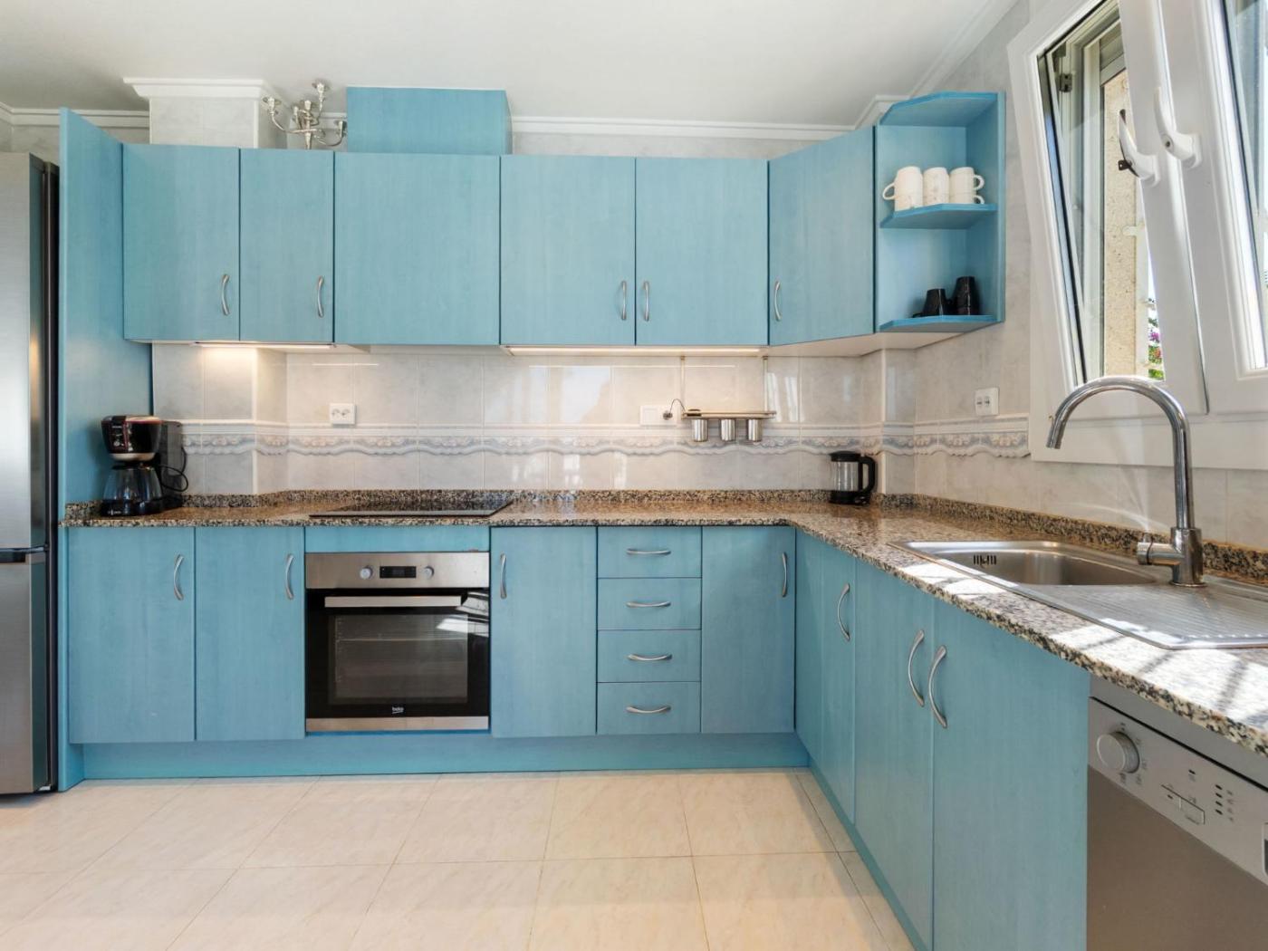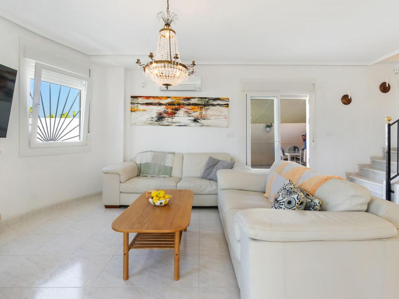 Esta villa de 3 dormitorios tiene aire acondicionado y ofrece 3 baños con bidet, ducha y secador de pelo. La cocina está equipada con nevera, lavavajillas y horno, además de cafetera.