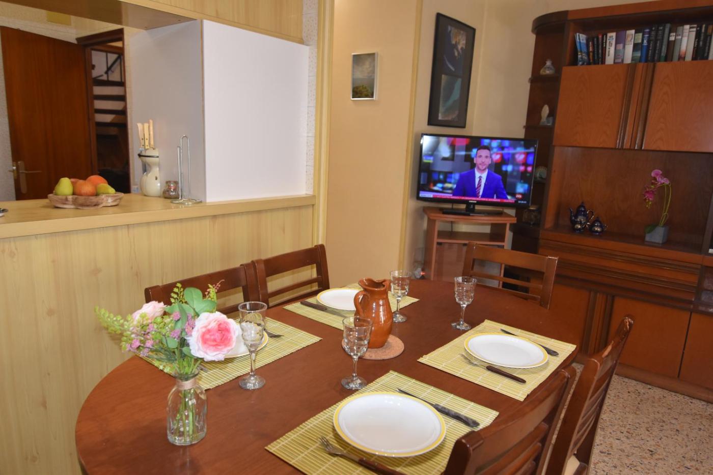 El apartamento dispone de 4 dormitorios, 2 baños, ropa de cama, toallas, TV de pantalla plana con canales vía satélite, zona de comedor, cocina totalmente equipada y balcón con vistas a la ciudad.