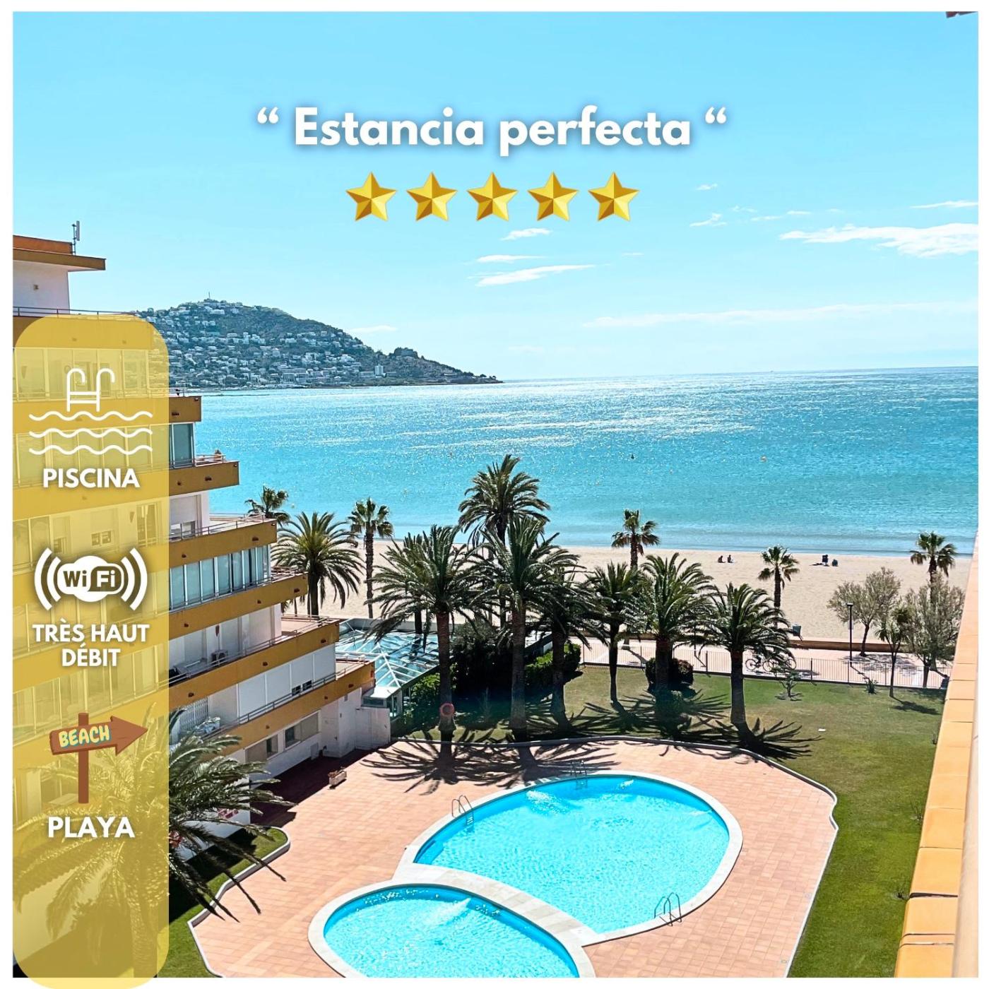 SANTA BEACH, que cuenta con jardÃn, zona de playa privada y terraza, ofrece alojamiento en Roses con wifi gratis y vistas a la ciudad. Este alojamiento con vistas al mar dispone de balcón y piscina.