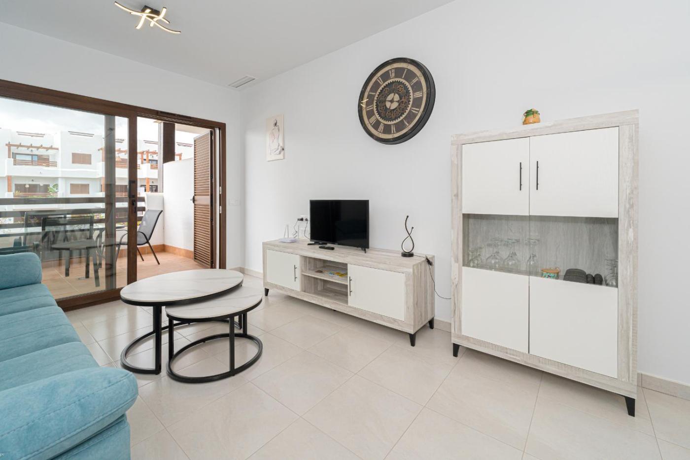 Apartamento con vistas a la piscina. This spacious apartment comes with 2 bedrooms, kitchen, a terrace and 1 bathroom with a shower. The well-fitted kitchen has a refrigerator, a dishwasher, kitchenware and an oven. The air-conditioned apartment features a TV with satellite channels, a washing machine, a tea and coffee maker, heating as well as pool views. The unit has 3 beds.