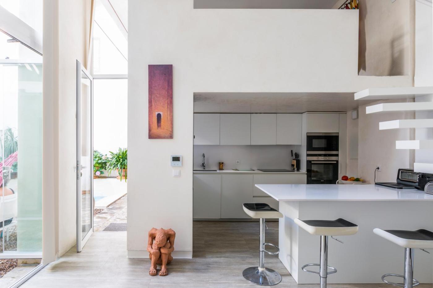Casa de 2 dormitorios. Esta casa ofrece piscina privada. Esta casa dispone de aire acondicionado, 1 sala de estar, 2 dormitorios independientes y 1 baño con ducha. La cocina está bien equipada con fogones, nevera, utensilios y horno. La casa dispone de terraza con vistas al jardín, lavadora y TV de pantalla plana. El alojamiento cuenta con 3 camas.
